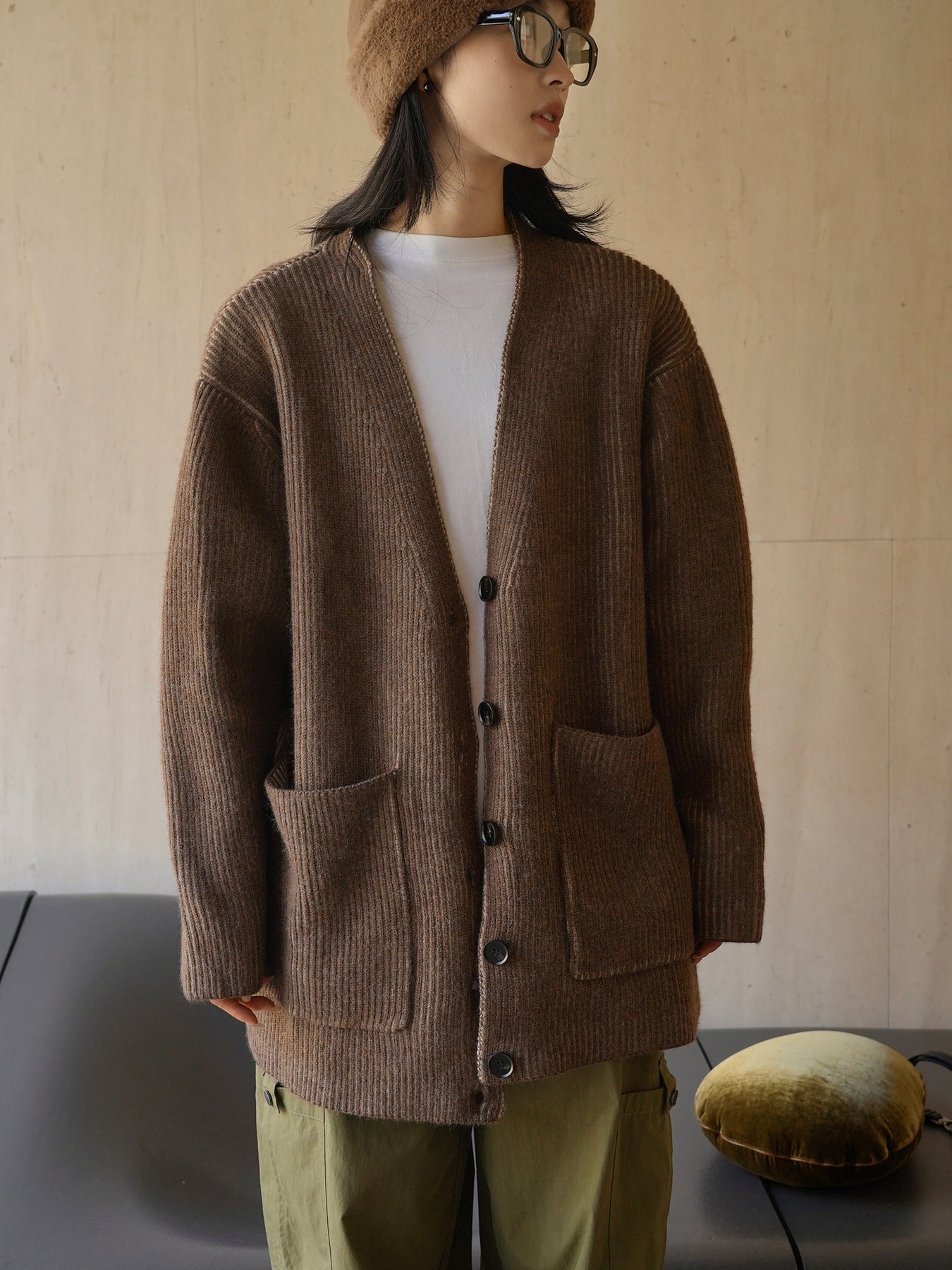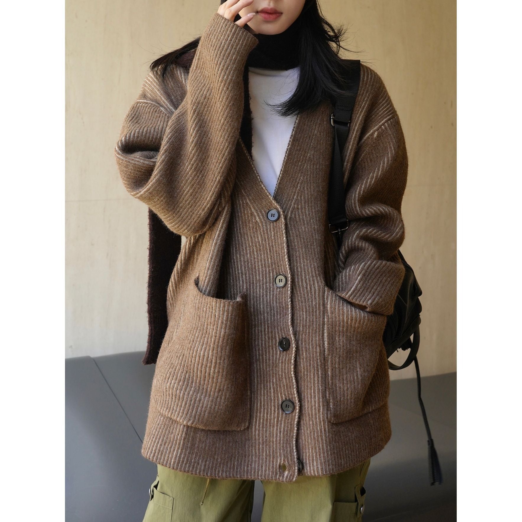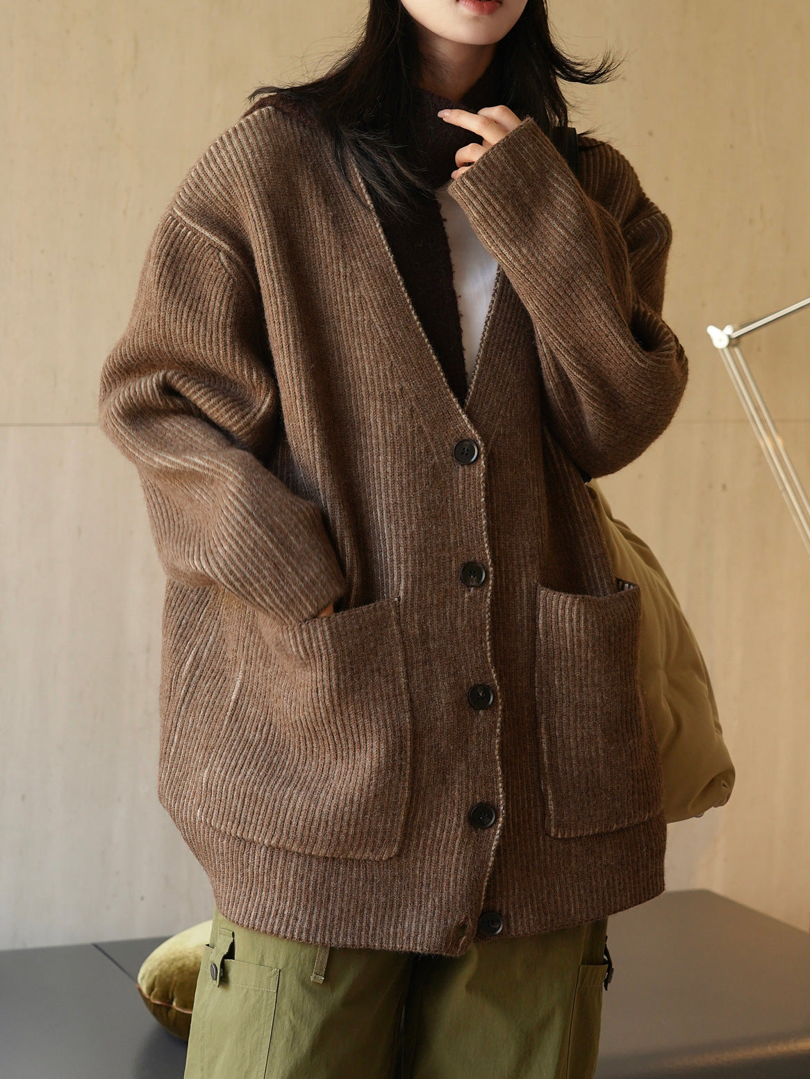 Embrace a casual and warm look with our thick V-neck cardigan. This loose and thick model is perfect for cool days. 🌟