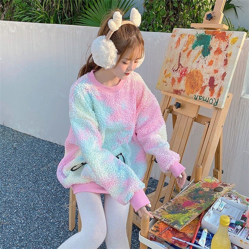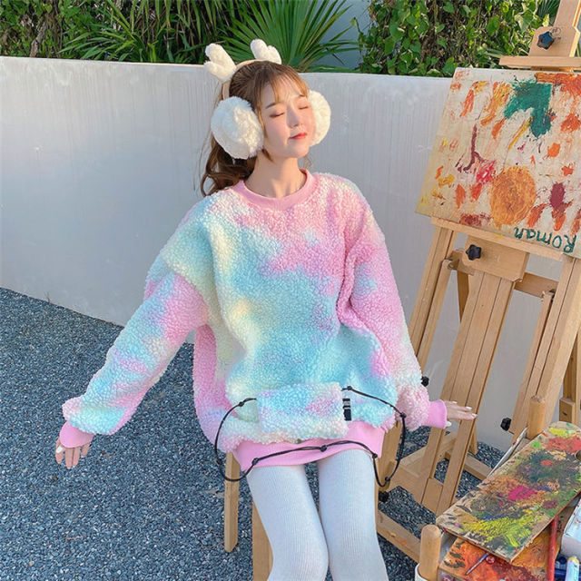 Wear this hoodie if you like soft tops with fur. This sweatshirt is particularly colorful, it comes in pink and blue. It's an amazing top for staying warm in winter and having an atypical style from South Korea. It is very popular in the K-pop scene.