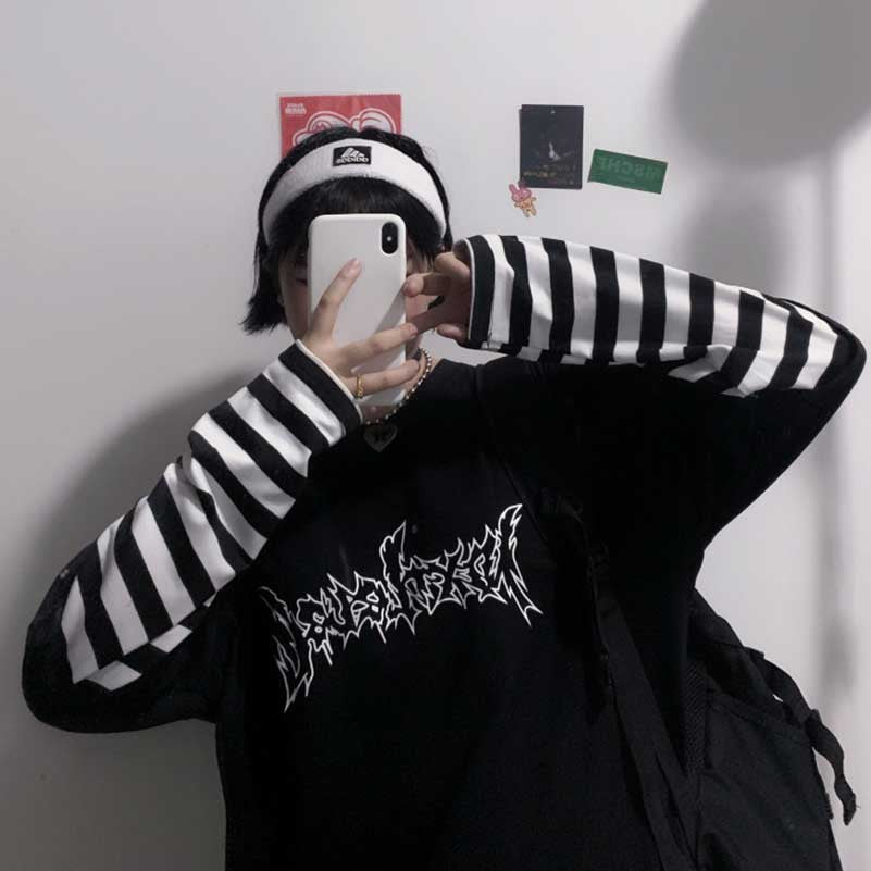 Long-sleeved T-shirt with a Korean underground style. Comfortable, soft, and flexible.
