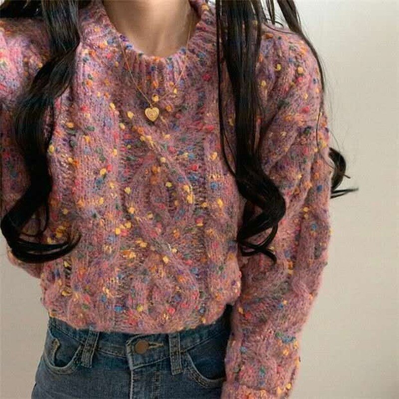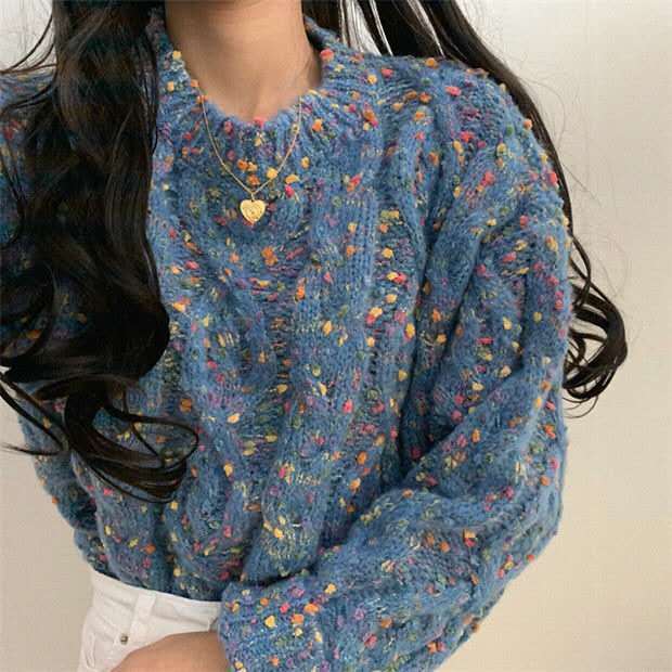 If you like wool sweaters, this non-animal wool sweater should please you. It's a synthetic wool sweater straight out of Korean fashion. It's perfect if you want to stay warm and comfortable, while wearing a sweater with colored dots.