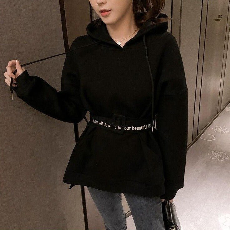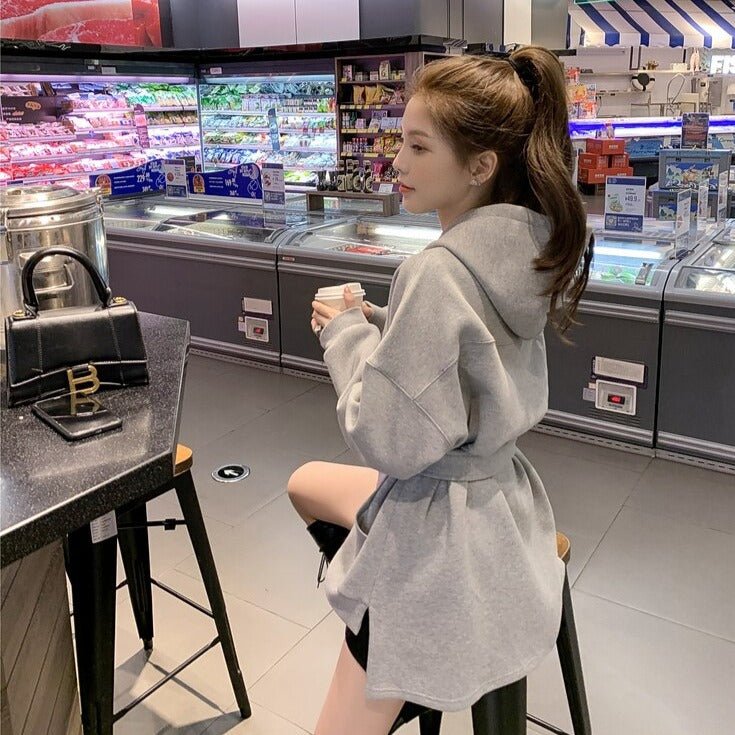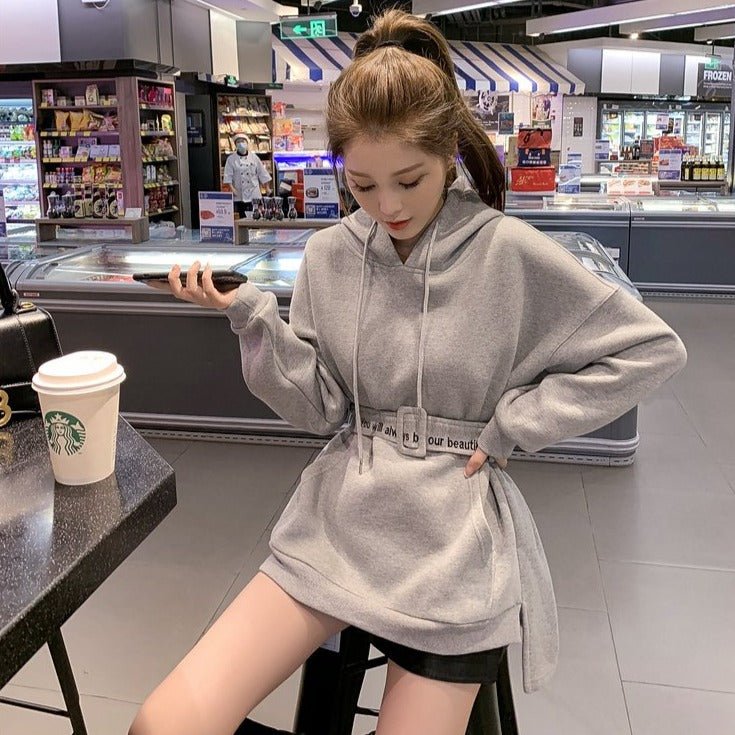 Do you like wearing comfortable Hoodies? This Long Hoodie is made for you! Enjoy the drawstring waist for a Korean look.