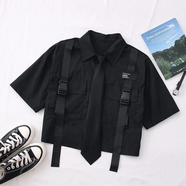 chemise noir streetwear crop top