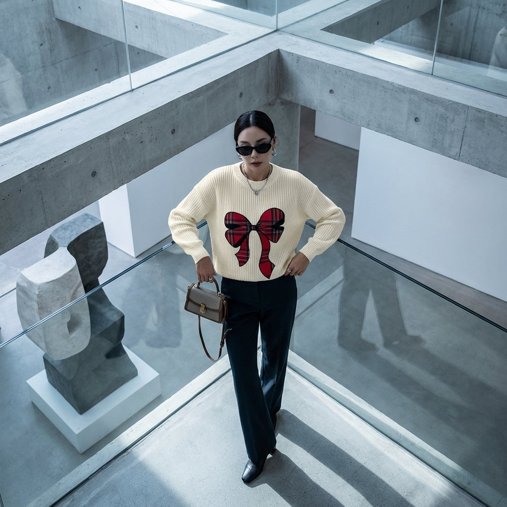 - Style: Korean Fashion, Soft, Trendy. This sweater embodies the casual elegance of K-fashion, perfect for a charming and modern look.