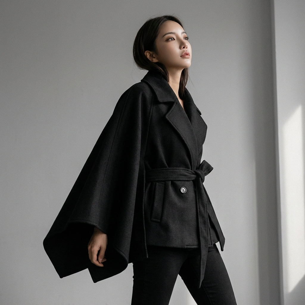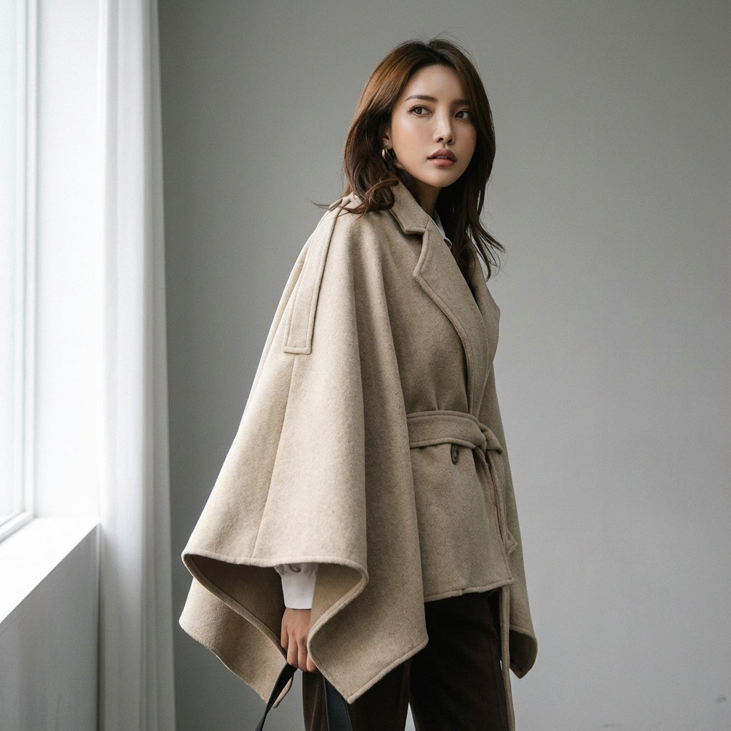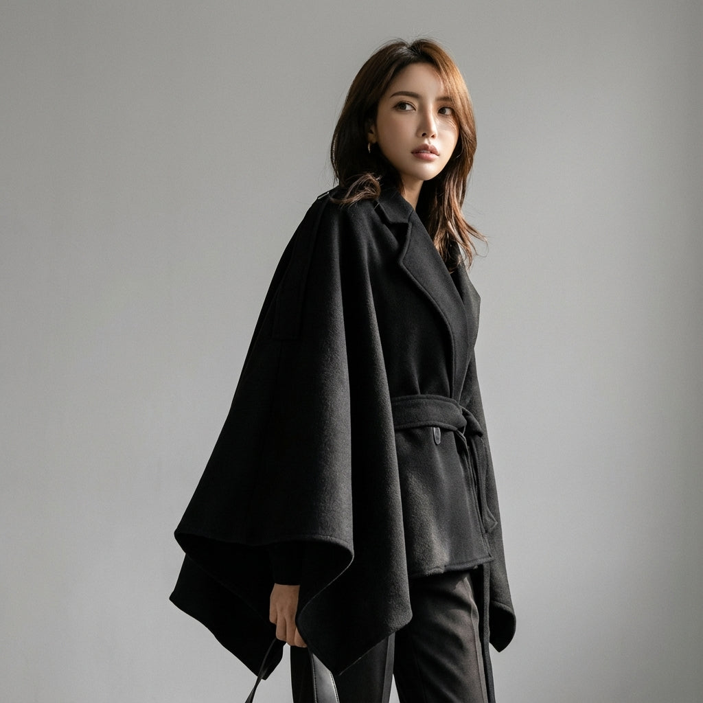 - Style: Korean Fashion, Elegant, Urban Chic, Commuter. Inspired by the latest Korean trends, this poncho cape adds a touch of sophistication and modernity to your wardrobe.