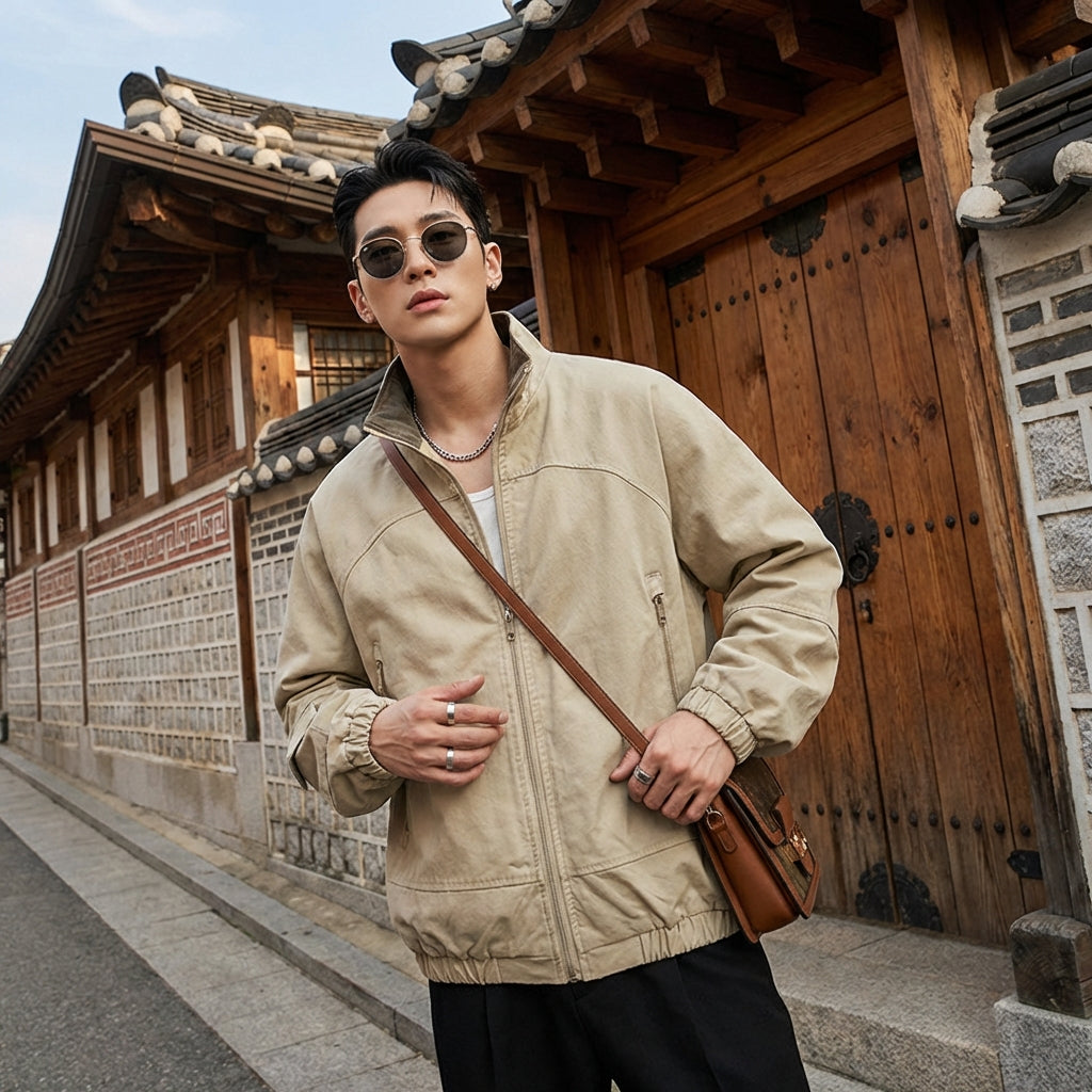 • Style: Streetwear, Retro, K-fashion. This jacket embodies urban and casual style, with a retro touch inspired by Korean trends.