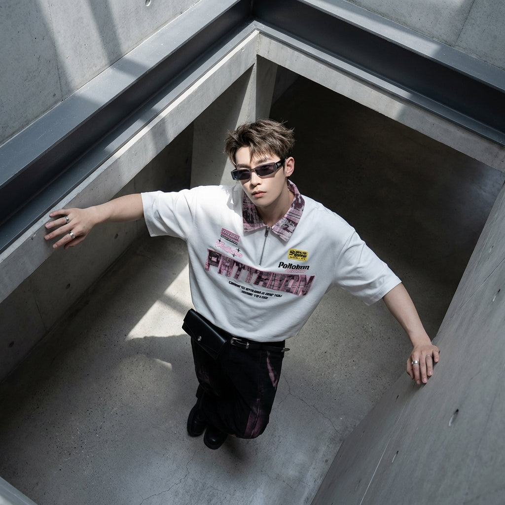 Embrace a casual and trendy look with our Zip-Up Collar T-shirt, perfect for a bold streetwear style. Its loose fit and two-tone design make it a versatile and comfortable piece for all your summer outfits! ☀️