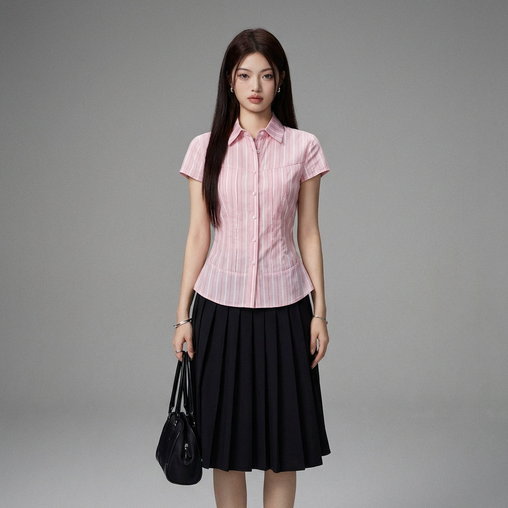 Embrace a fresh and elegant look with our pink striped blouse, perfect for a feminine and modern allure. Its fitted cut will enhance your silhouette with chic and discretion! 🌸