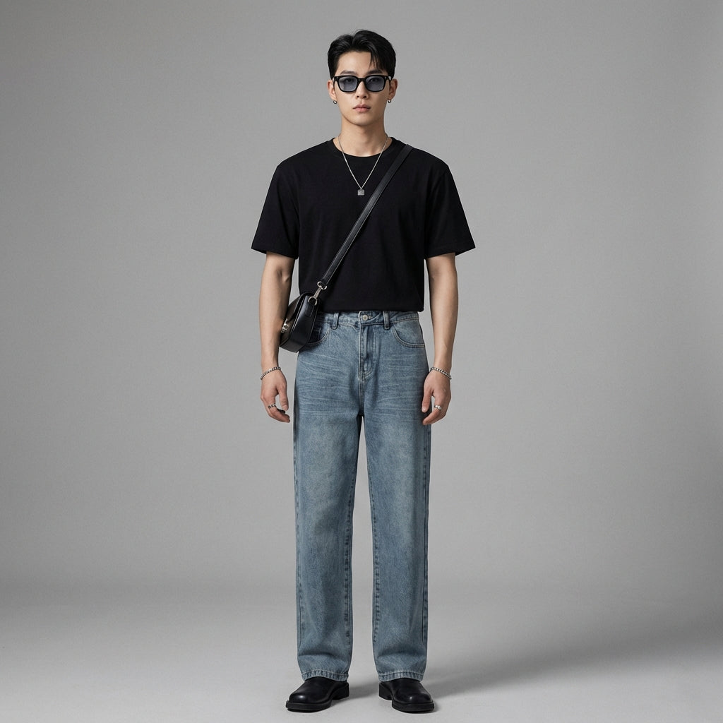 - Style: Streetwear, Casual, K-fashion. These jeans embody the spirit of urban fashion, ideal for a relaxed and stylish look.