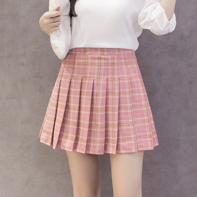 Embrace a bold look with our Korean Schoolgirl Plaid Pleated Skirt, perfect for a schoolgirl and alluring style. Its mini cut and zipper closure flatter your figure while adding a sexy and chic touch to your outfit! 🎓