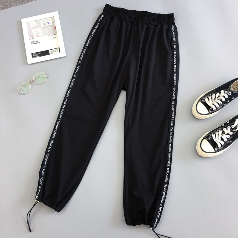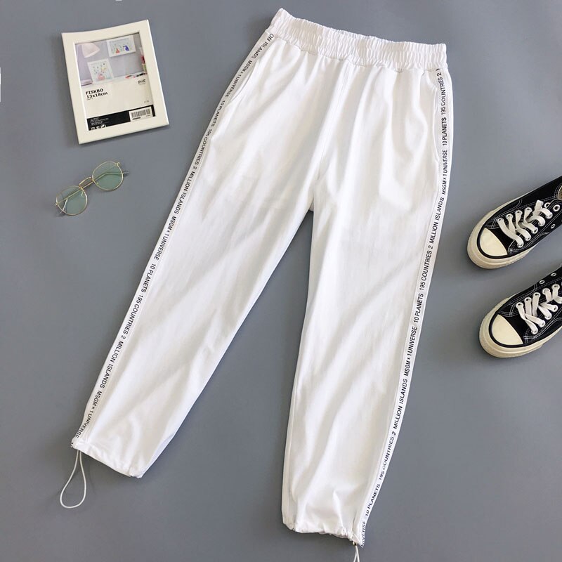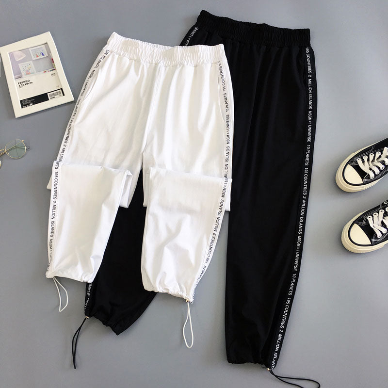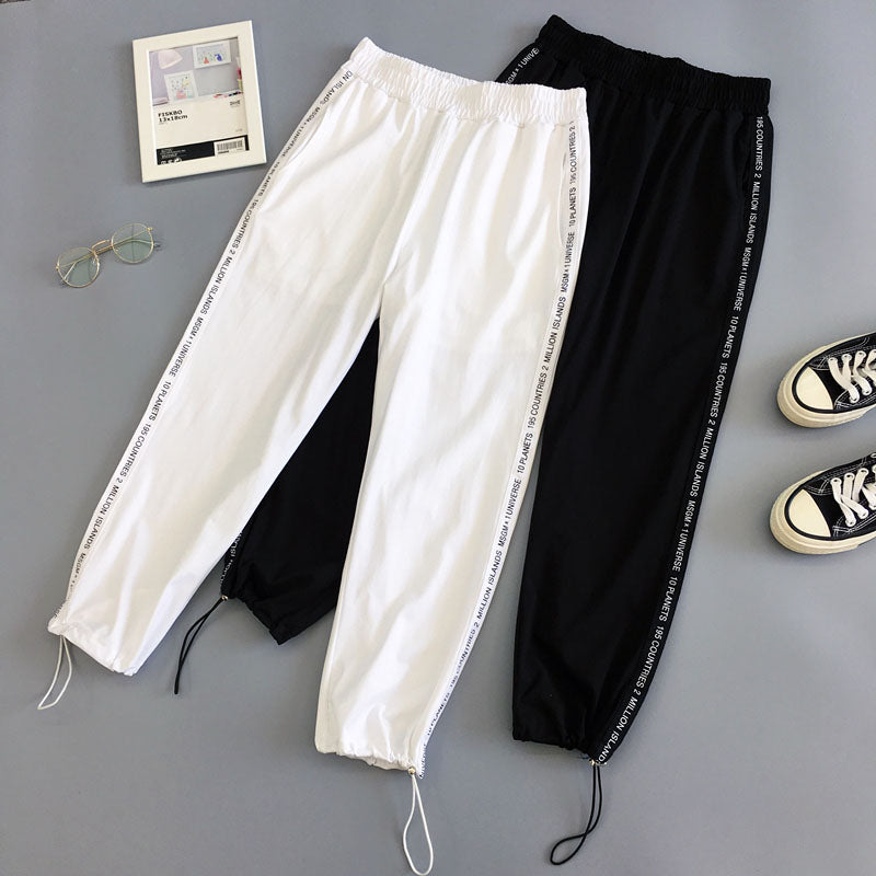 Do you like short pants that highlight your ankles? Wear these Korean "World" pants that make your legs look longer and feature the word "world" inscribed on them.