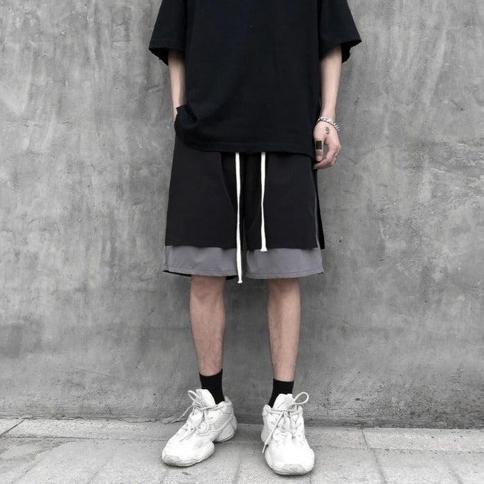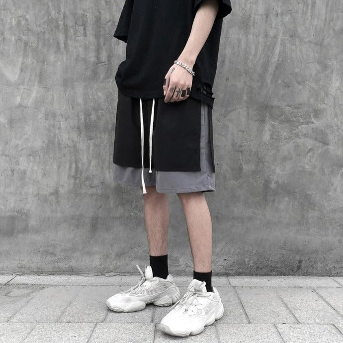 Short coréen doublé noir et gris