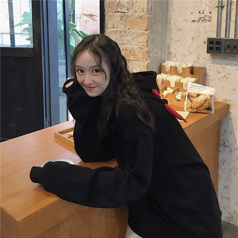 Do you like devilishly cute hoodies? Here is a hoodie with demon horns and wings, it's perfect for young fans of Korean fashion. This hoodie is perfect for going to conventions or any kind of Asian-themed events.