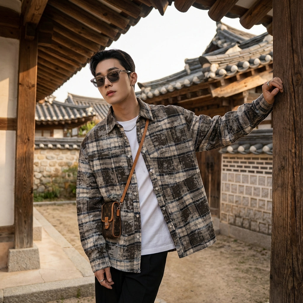 - Style: Streetwear, Casual, Korean Fashion. This shirt embodies the relaxed and trendy spirit of Korean streetwear, ideal for an urban and modern look.