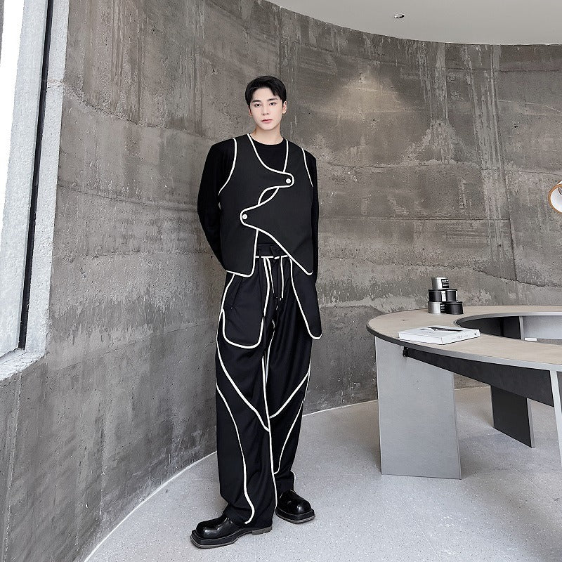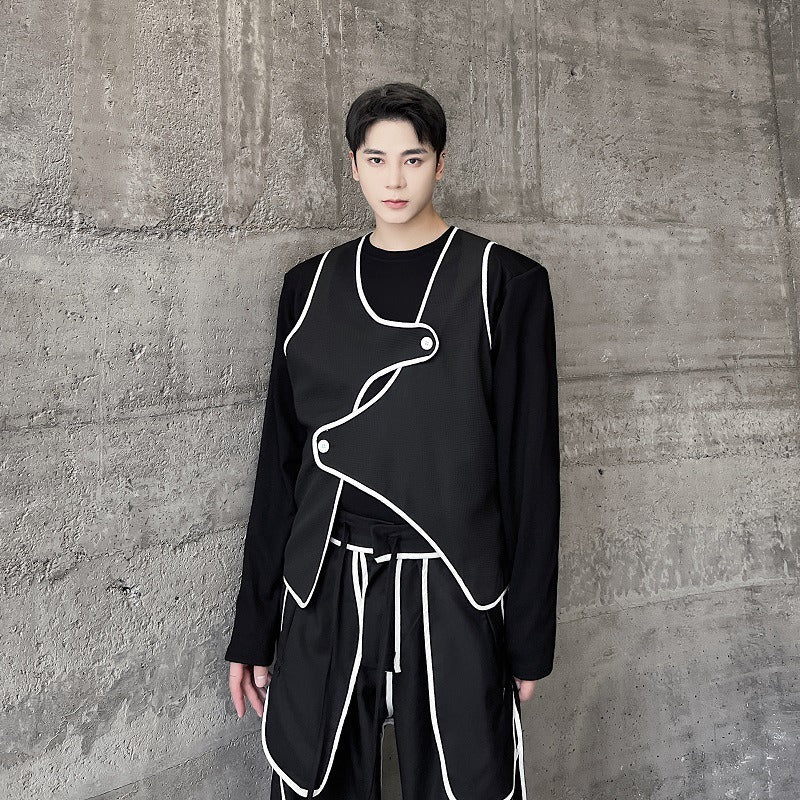 Adopt a trendy look with our two-tone short vest, perfect for an urban and sophisticated style. This collarless, double-breasted vest is ideal for all your casual outings. 🌟