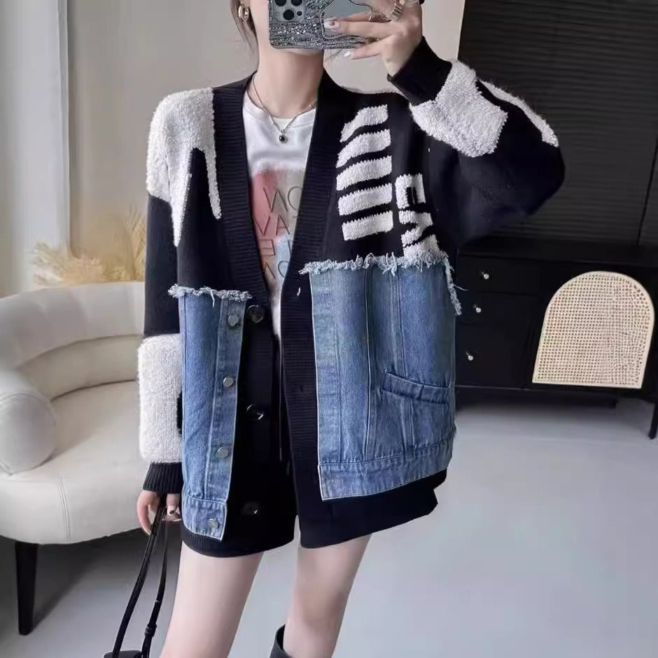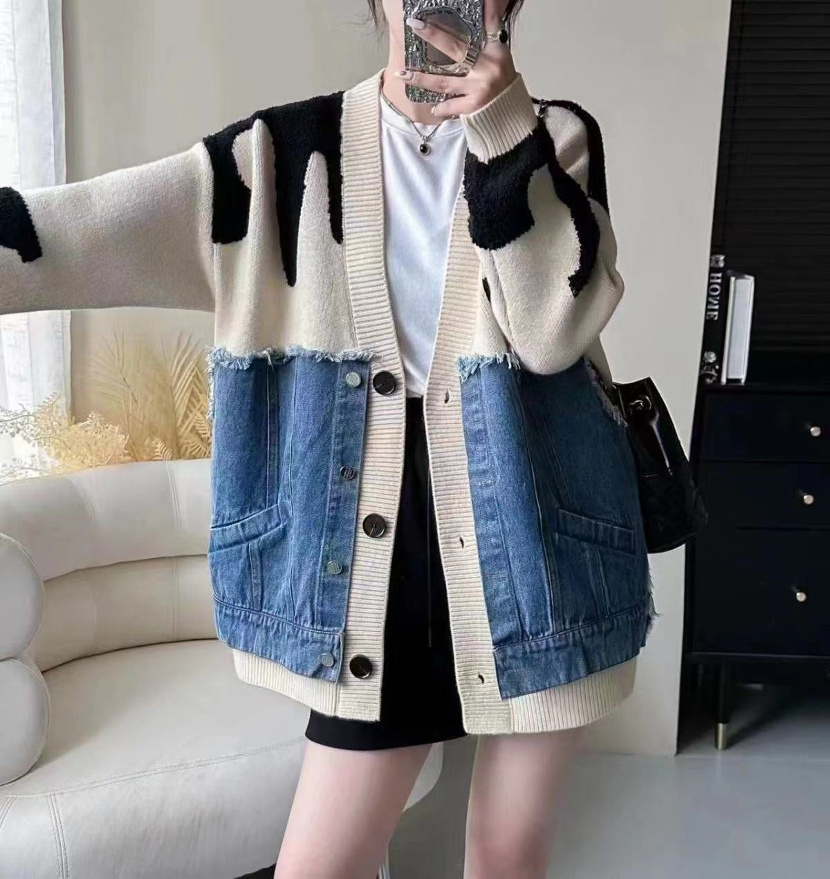 Opt for this two-tone knitted coat and add a touch of Korean fashion to your wardrobe. Perfect for a casual and elegant look!