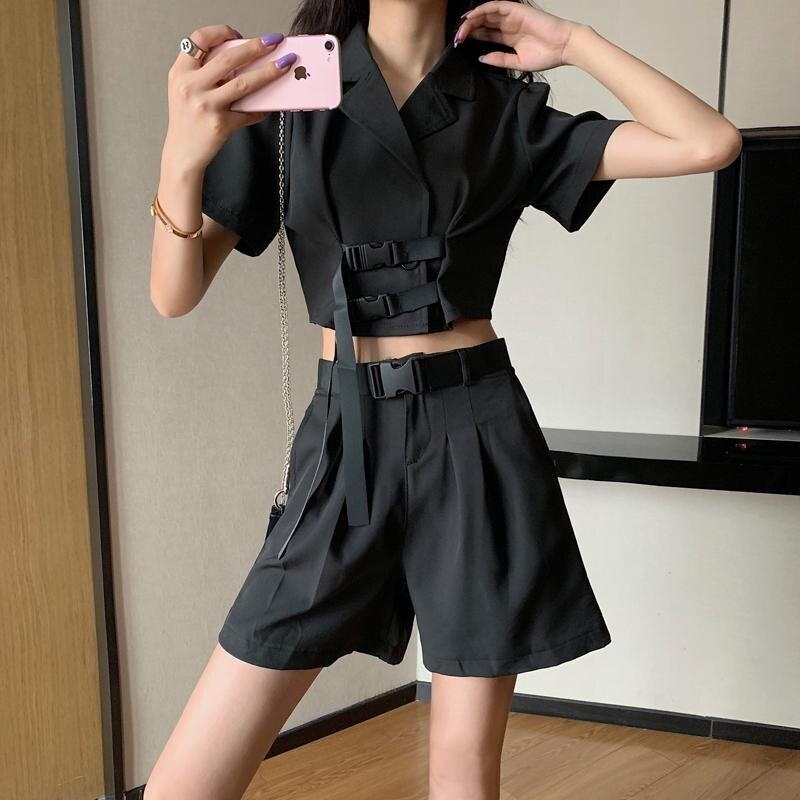 Do you need a complete outfit to be trendy in Korean fashion? Do you love streetwear clothes? Here is a superb outfit composed of a skirt and a black top.