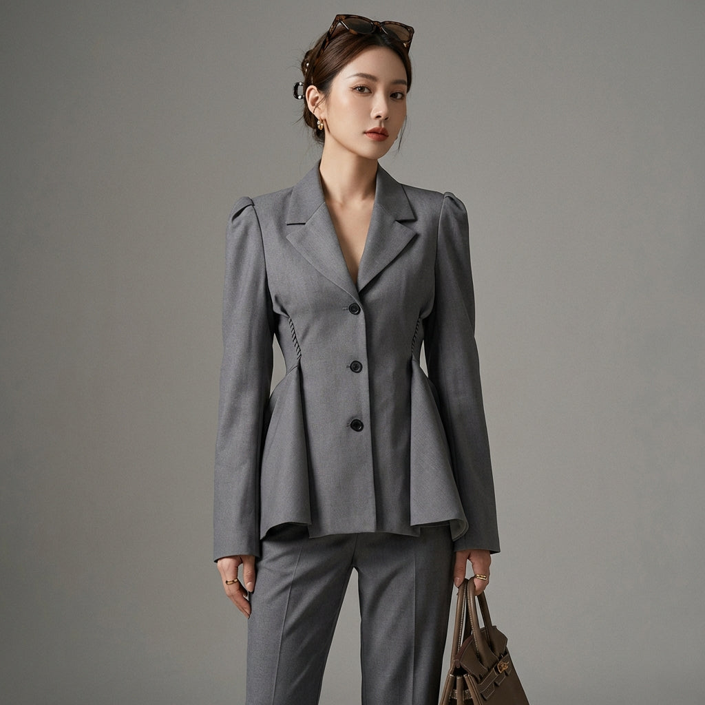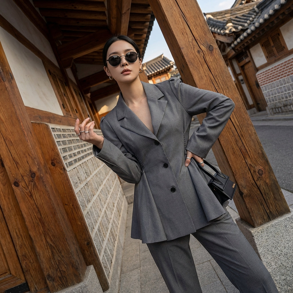 • Style: Korean fashion, Elegant, Sophisticated, K-fashion. This jacket embodies the discreet elegance and clean lines of Korean fashion, perfect for a refined look.