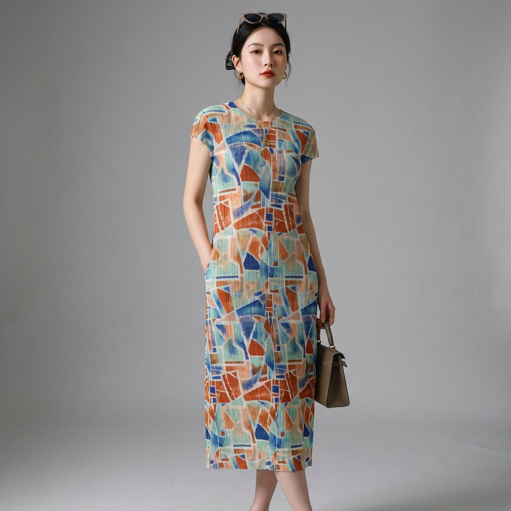 Embrace a chic and trendy look with our printed pleated dress, a must-have for your summer wardrobe. Its elegant cut and unique print make it the perfect piece for all occasions! 🌸