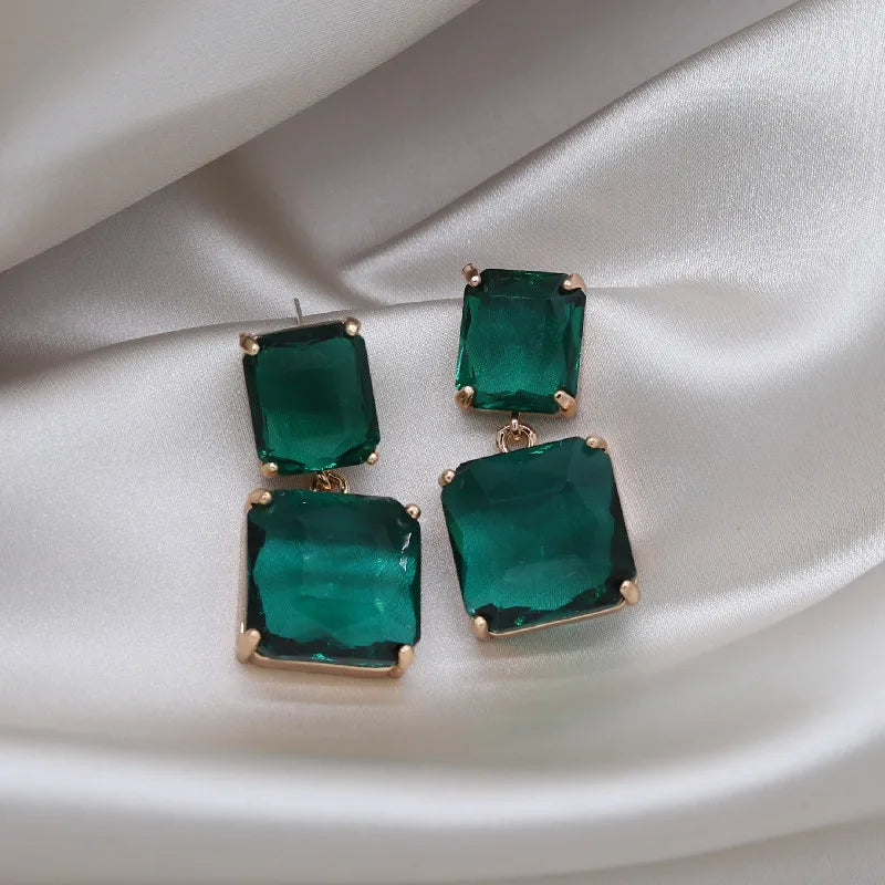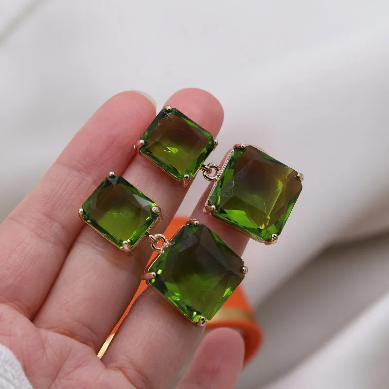 Elevate your style with these gorgeous square double drop earrings, encrusted with sparkling crystals. Perfect for enhancing your evening outfits! ✨