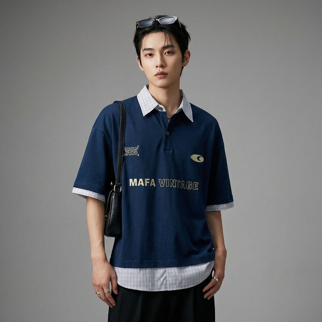 Embrace a casual and trendy look with our lapel collar t-shirt with letter print. Designed for comfort and style, this "two-piece" effect top is perfect for a stylish and relaxed summer, for both her and him! ✨