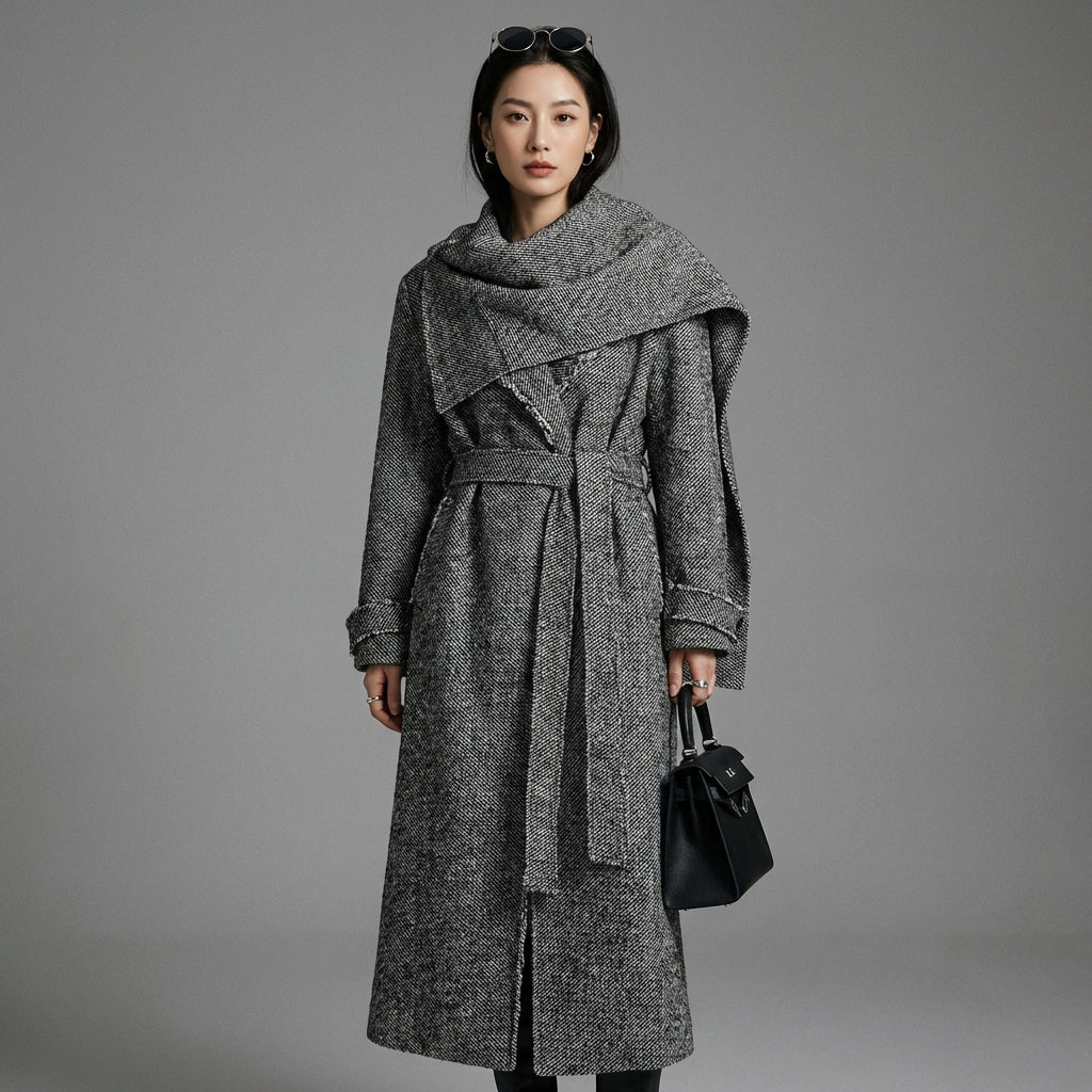 Trench-coat long streetwear gris pour femme - Koreanxwear