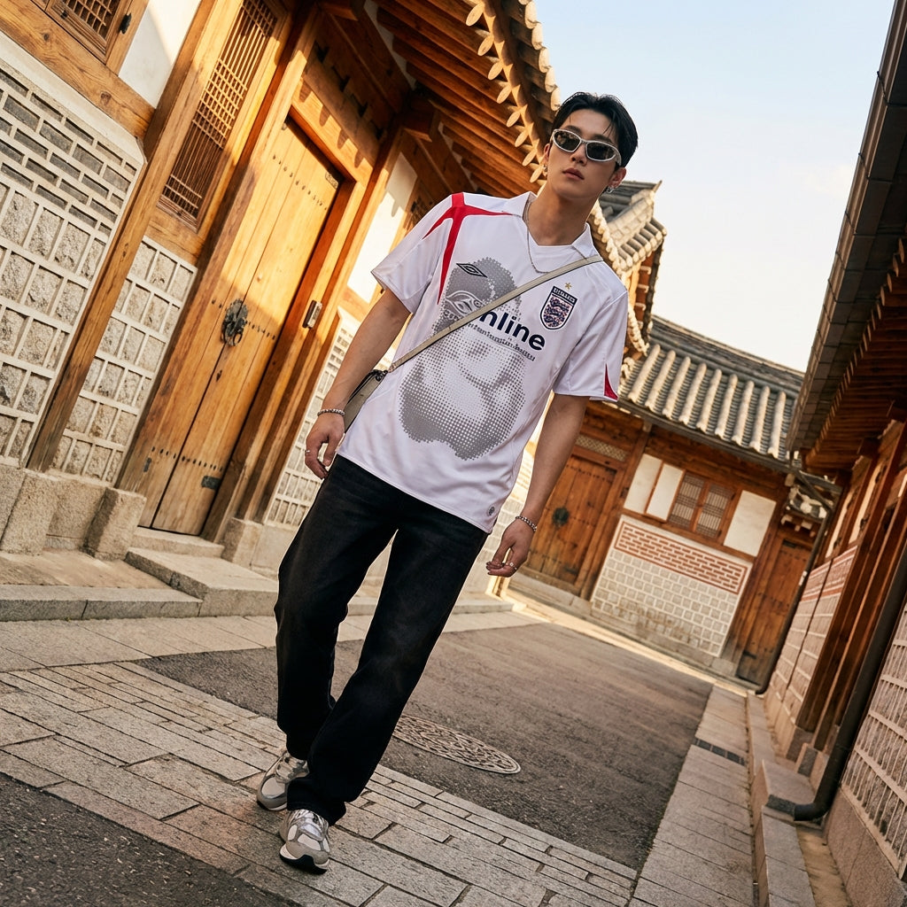 • Style: Streetwear, K-fashion, Casual, Urban. This t-shirt embodies the relaxed and trendy style of Korean fashion, perfect for a fashionable everyday look.