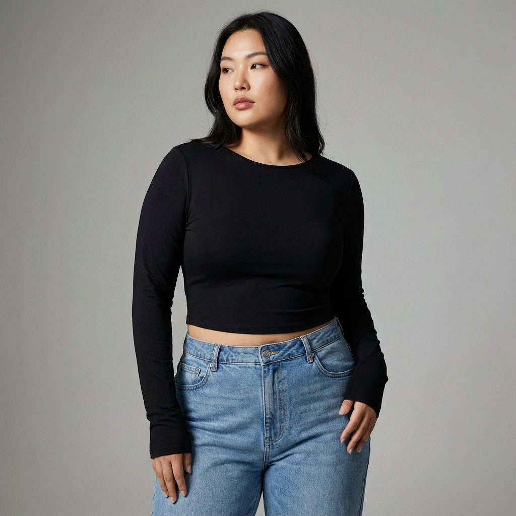 - Type: Crop top, Fitted cut. Ideal for highlighting the silhouette with a modern and sophisticated touch.