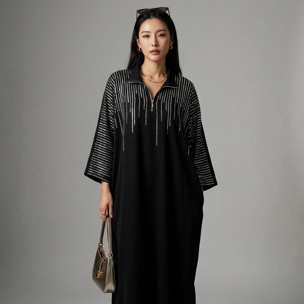- Type: Long dress, Loose fit. A fluid cut that offers an elegant and comfortable silhouette, with great freedom of movement.