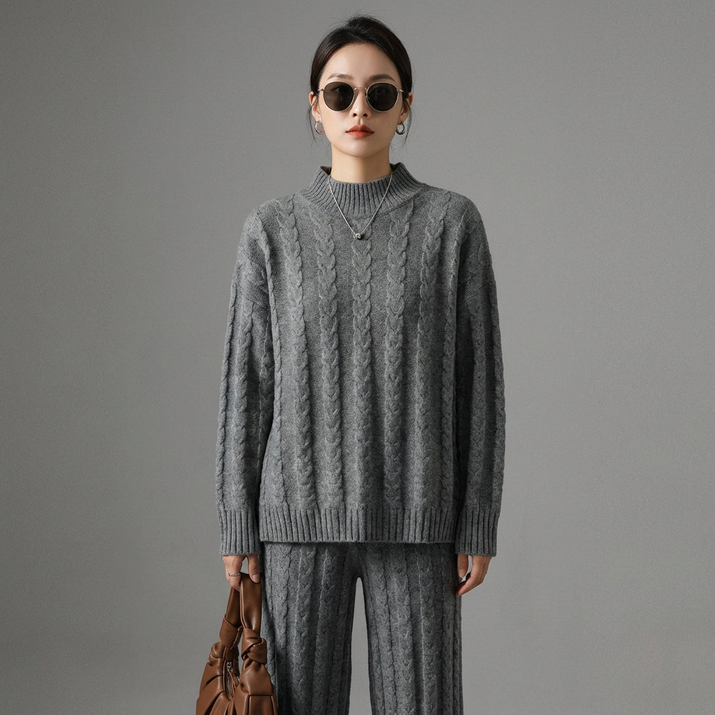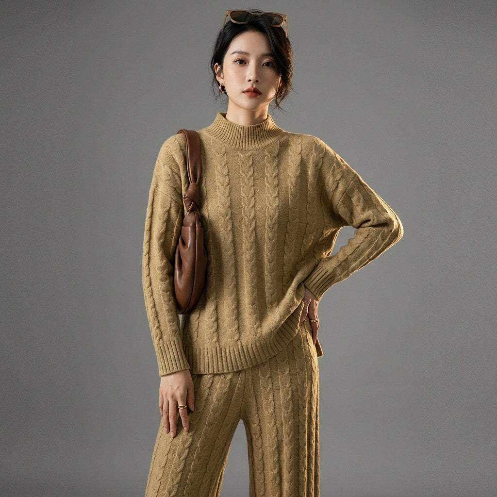 Ensemble pull col semi-montant et pantalon large taille haute - Koreanxwear