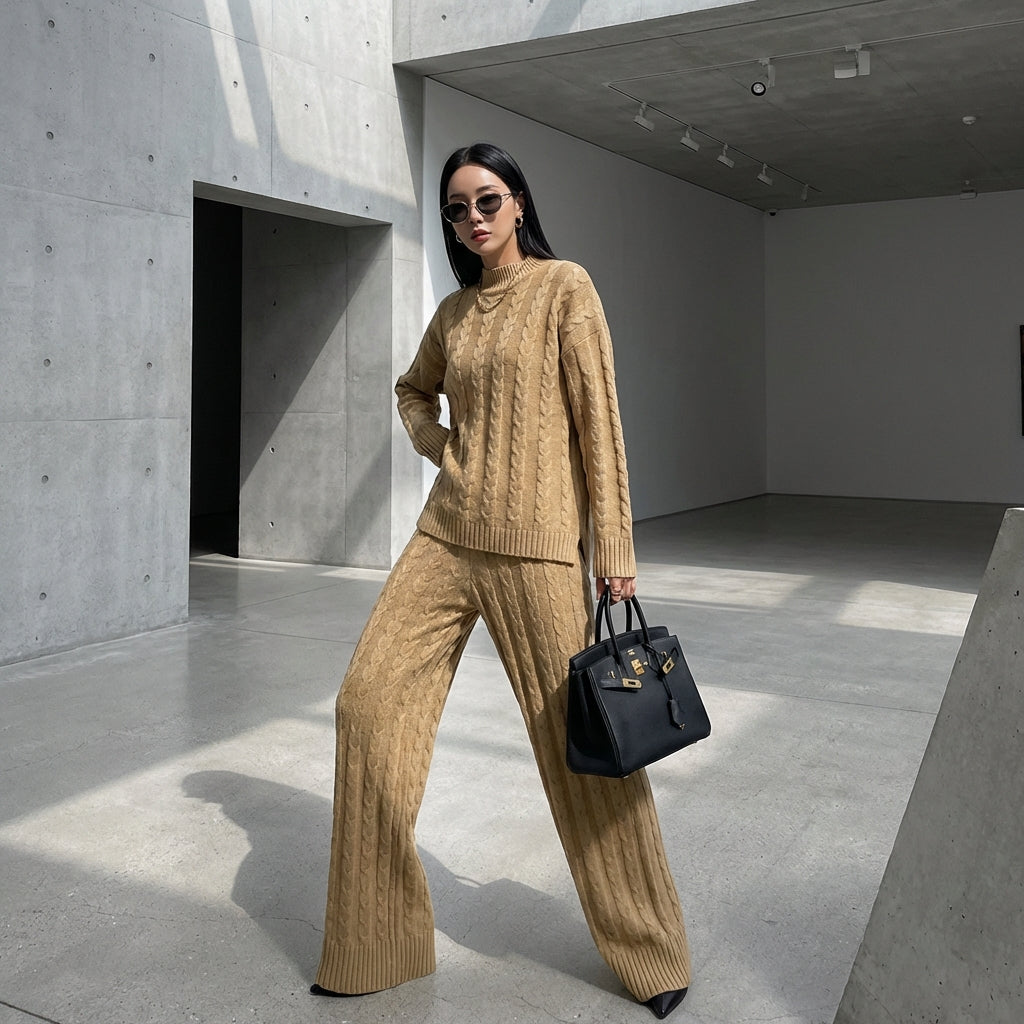 • Type: Sweater and pants set, Wide leg, High waist. A contemporary cut that flatters all figures and offers great freedom of movement.