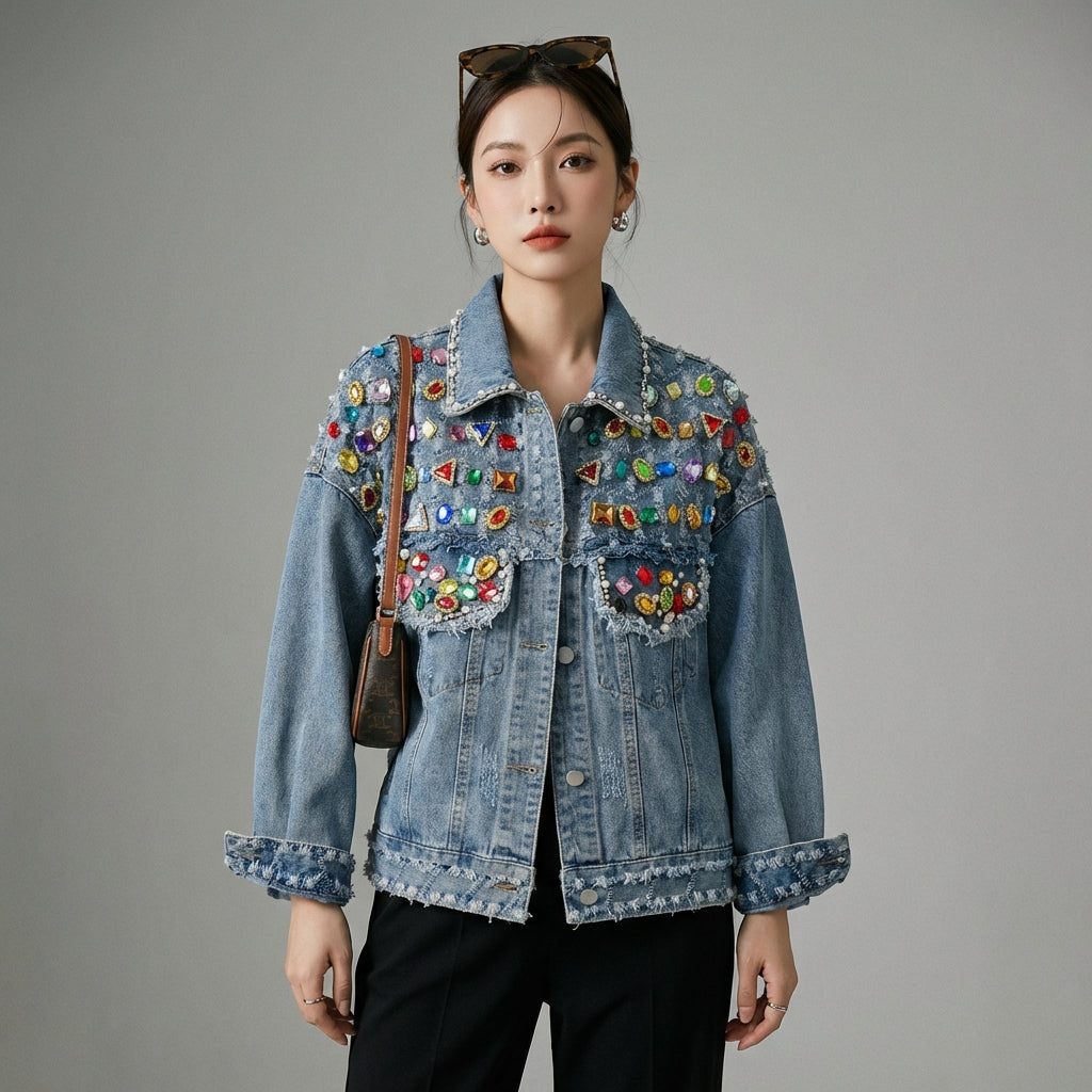 Embrace a casual and trendy look with our oversized denim jacket, designed to flatter your figure and offer a unique style with its frayed edges. Perfect for all your casual outings! 💙