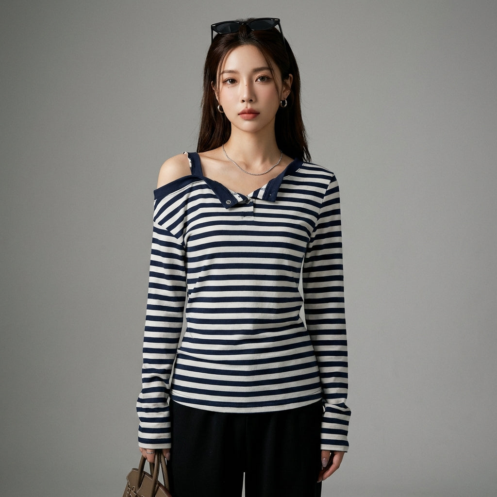 With its meticulous details like the polo collar and functional pockets, this denim jacket will quickly become a wardrobe essential. Pair it with cargo pants or a pleated skirt for a confident K-fashion style.