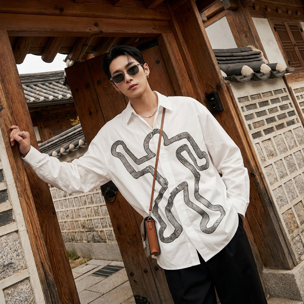 • Style: Streetwear, K-fashion, Retro. Inspired by urban aesthetics and Korean fashion, this shirt is perfect for a bold and contemporary look.