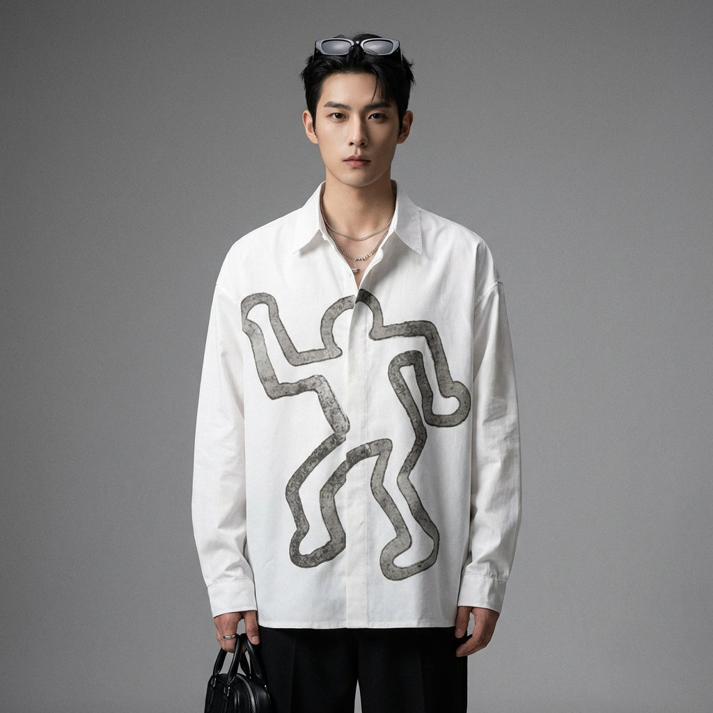 Chemise oversize imprimée abstrait et graffiti - Mode K-fashion