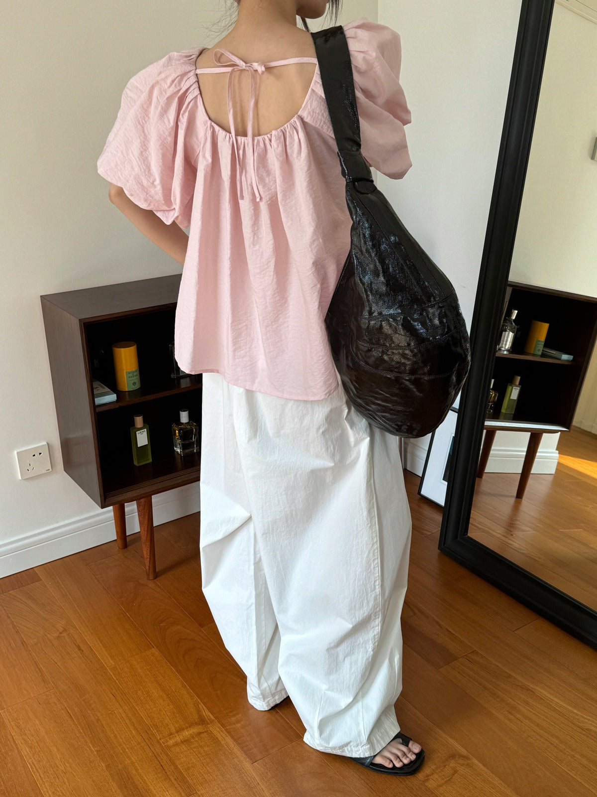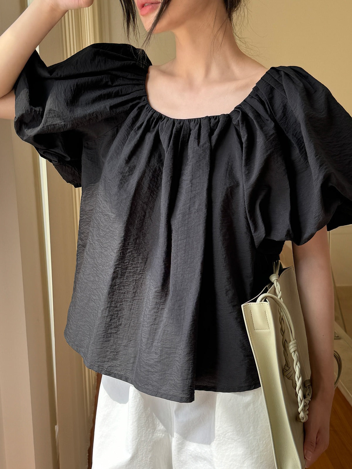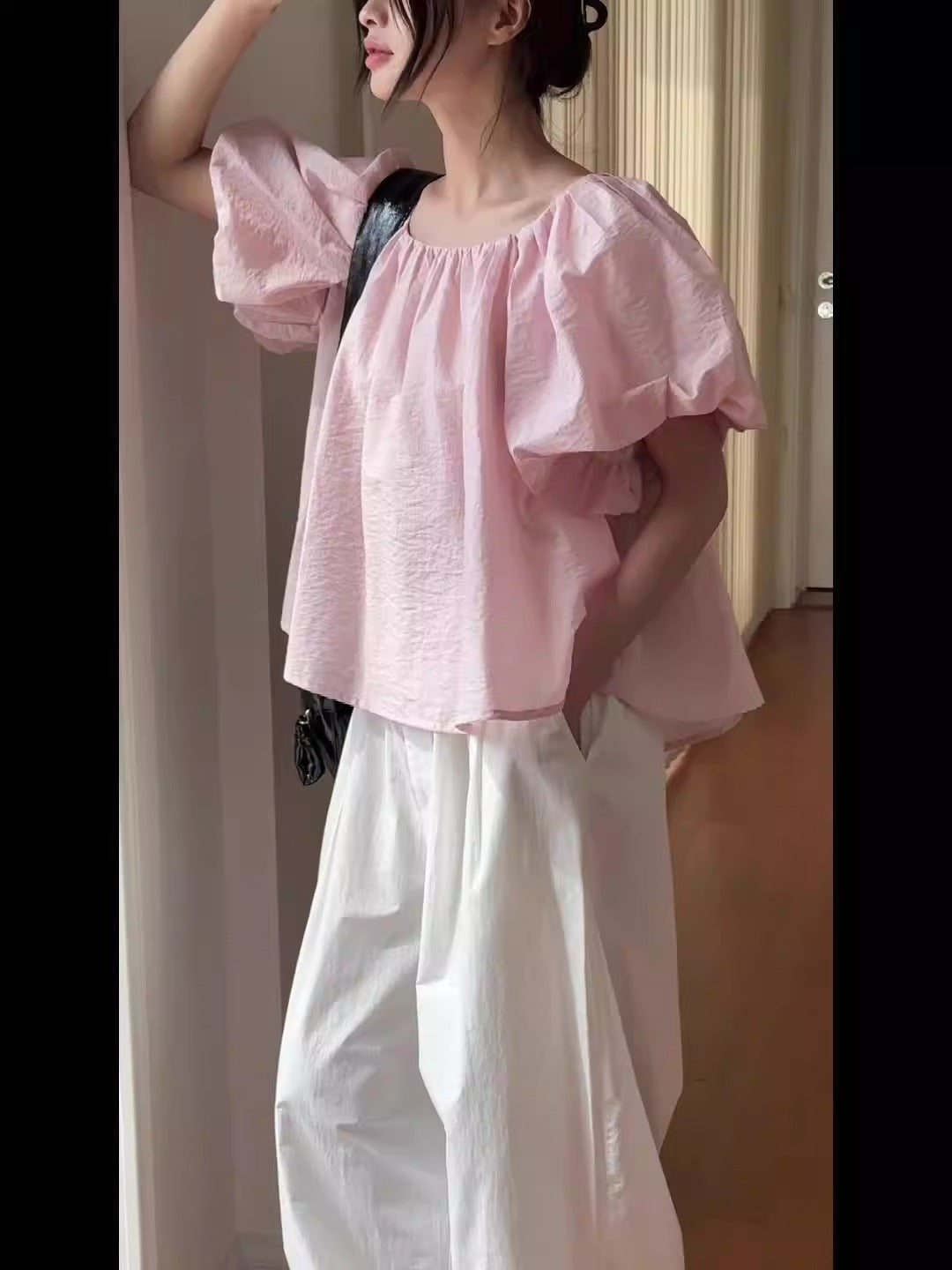 Adopta un look chic y casual con nuestra camiseta coreana de mangas abullonadas. Su corte holgado y cuello redondo la convierten en una prenda ideal para cualquier ocasión, ya sea para el trabajo, una salida nocturna o un día casual. 🌟