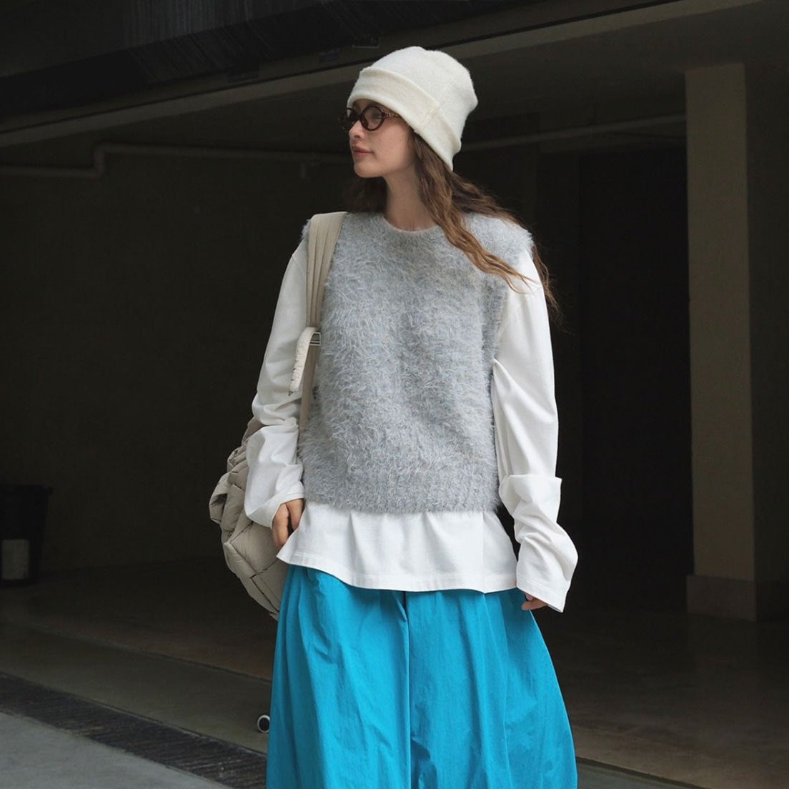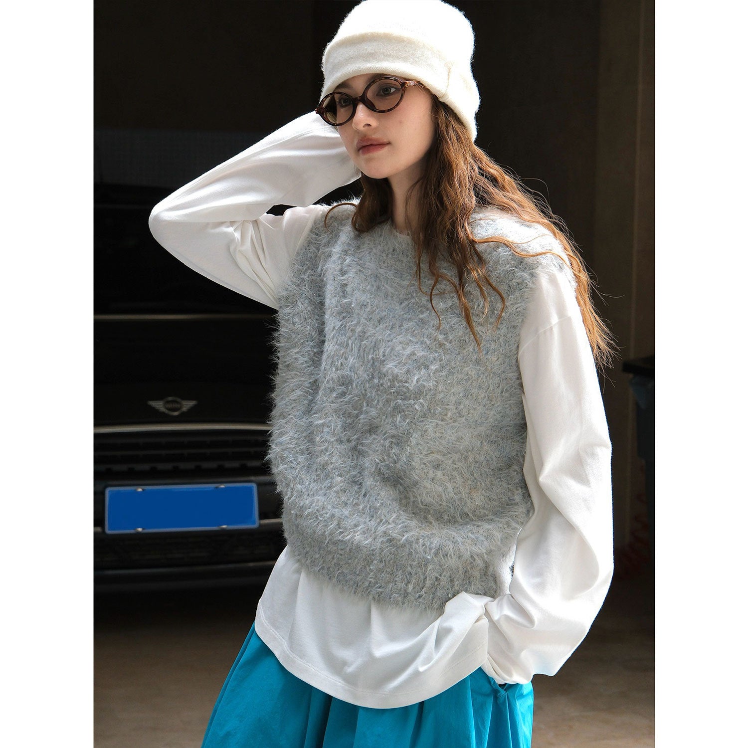 Descubre nuestro chaleco de lana coreano, suave y esponjoso, perfecto para un look casual y elegante. Con su cuello redondo y corte holgado, es ideal para todas las ocasiones. Disponible en color albaricoque y gris. 🌟