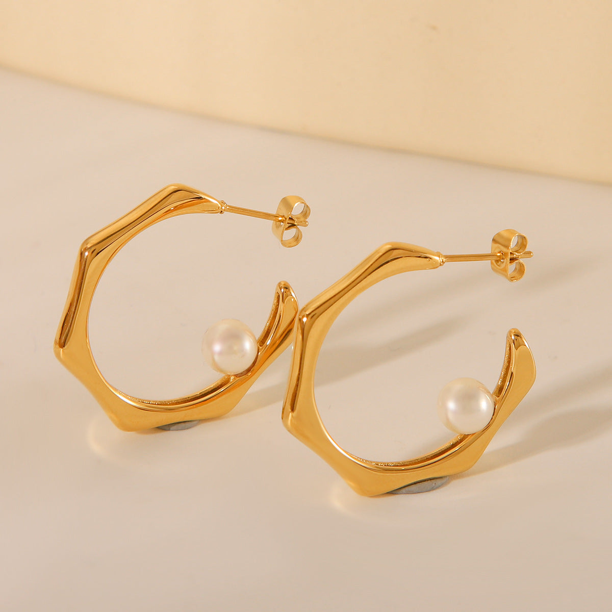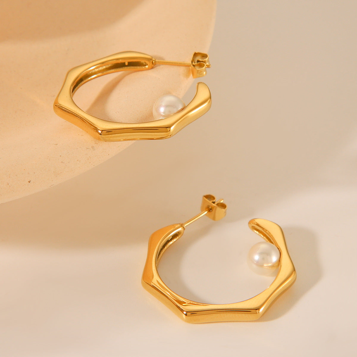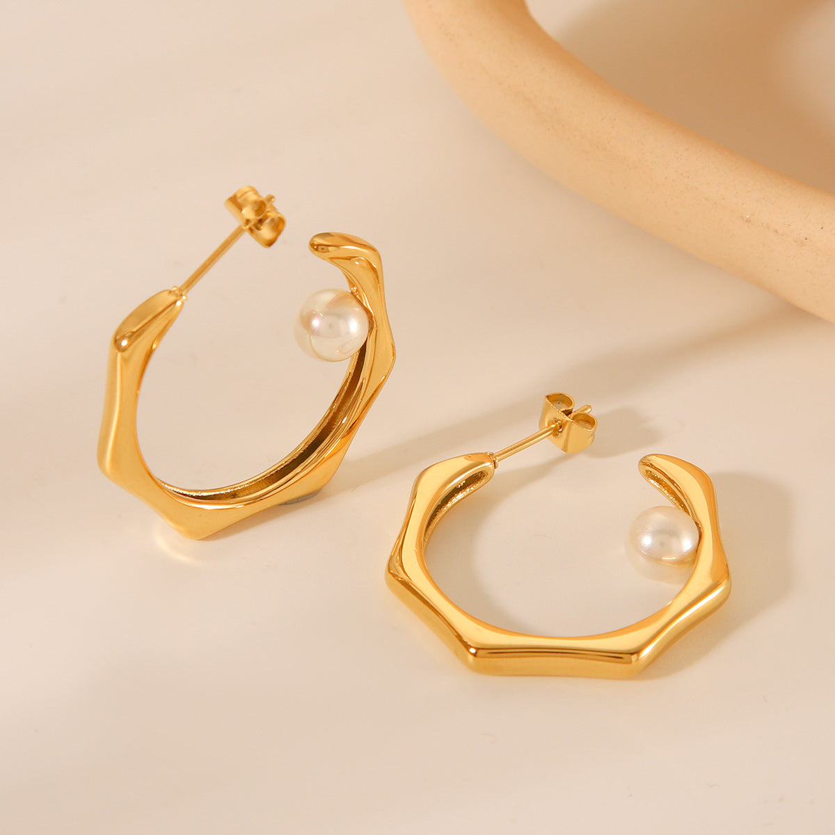 Añada un toque de elegancia a su look con nuestros pendientes de perlas coreanas. Estos pendientes geométricos en forma de C son a la vez modernos y versátiles, perfectos para cualquier ocasión ✨