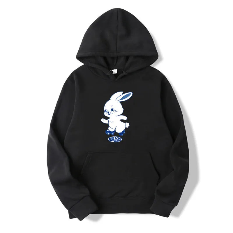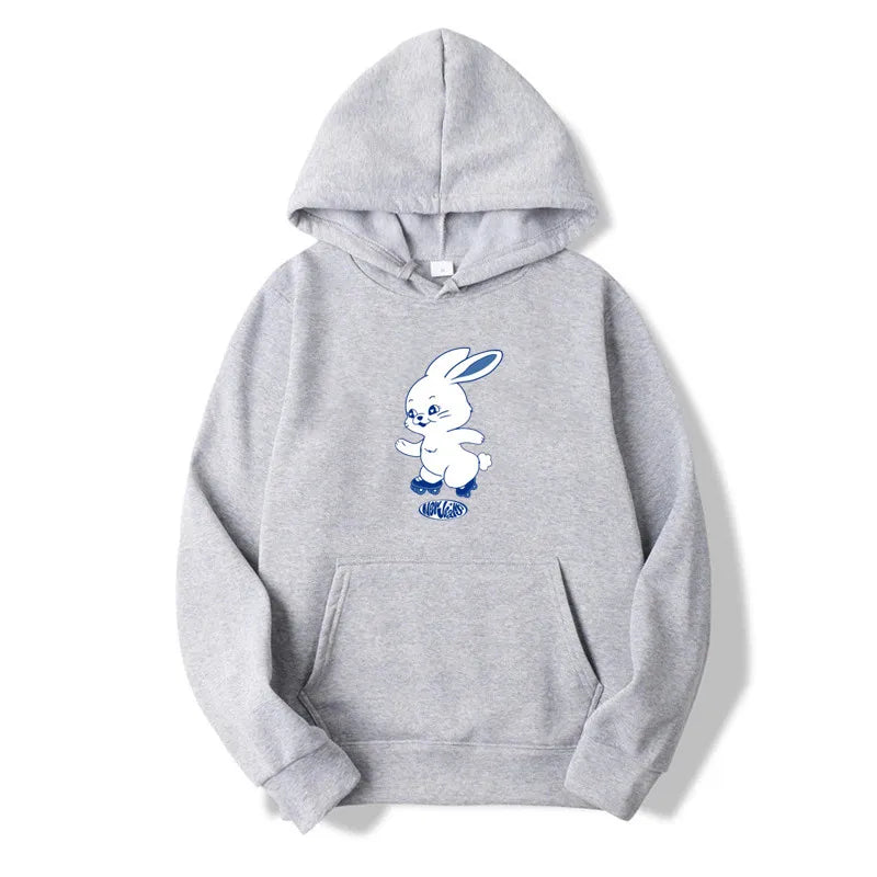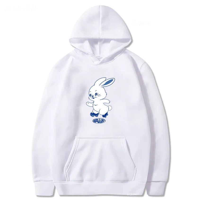 El estampado de caricatura de conejo añade una dimensión kawaii a esta sudadera con capucha, haciéndola perfecta para salidas casuales o como una declaración de estilo para los fans de la cultura K-pop. Con su forro de piel sintética, ofrece calidez y comodidad, mientras que la ligera elasticidad asegura un ajuste perfecto. Disponible en negro, blanco, gris y rosa, hay un color para cada personalidad y preferencia de estilo.