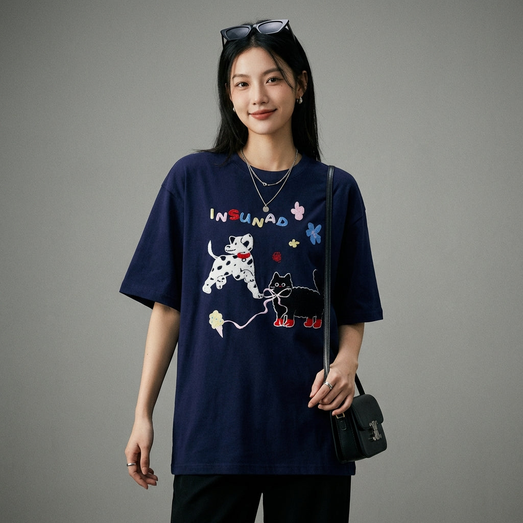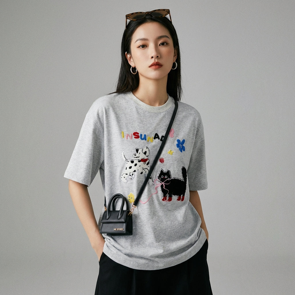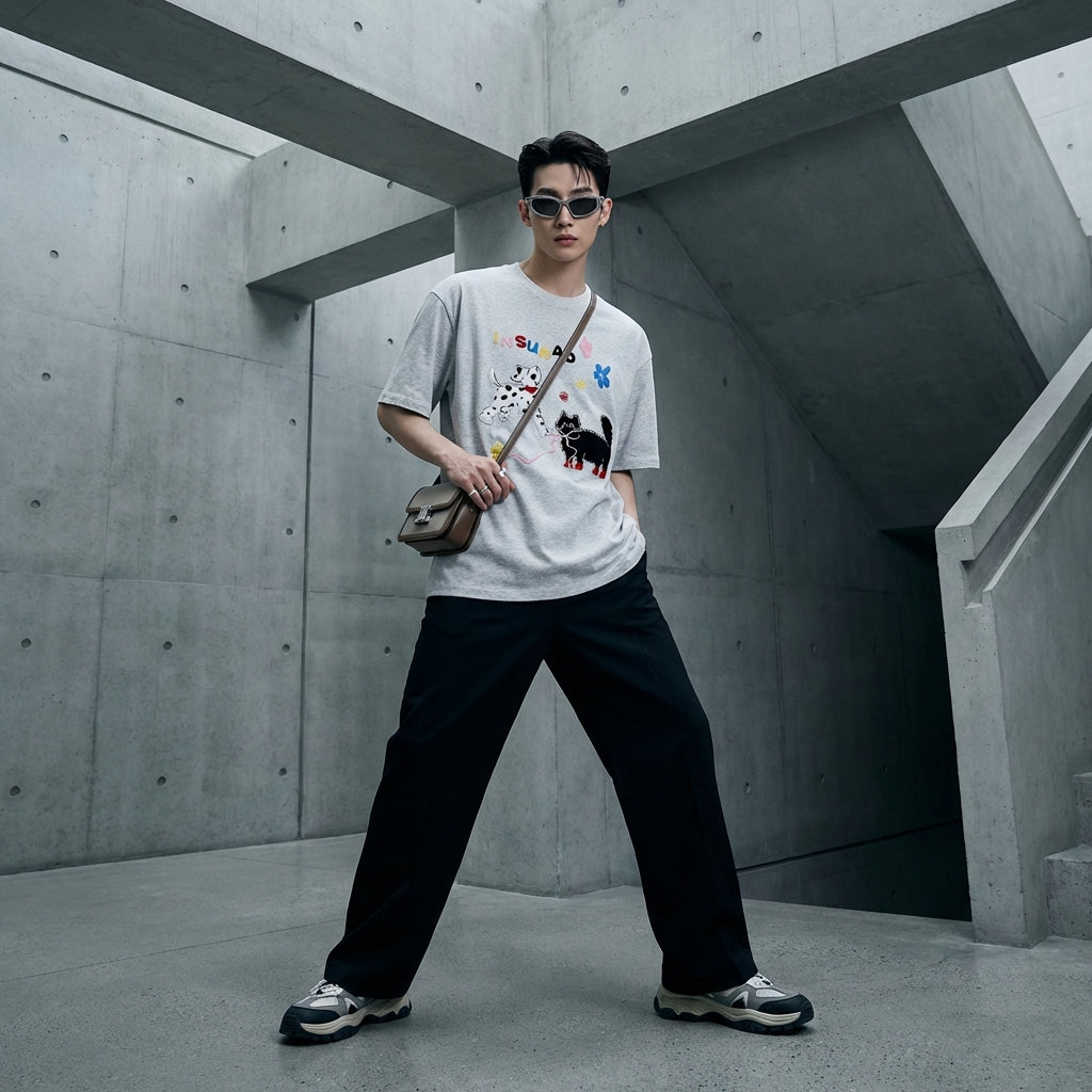 - Estilo: Streetwear, Casual, K-fashion. Esta camiseta encarna el espíritu joven y moderno de la moda coreana, perfecta para un look urbano y relajado.