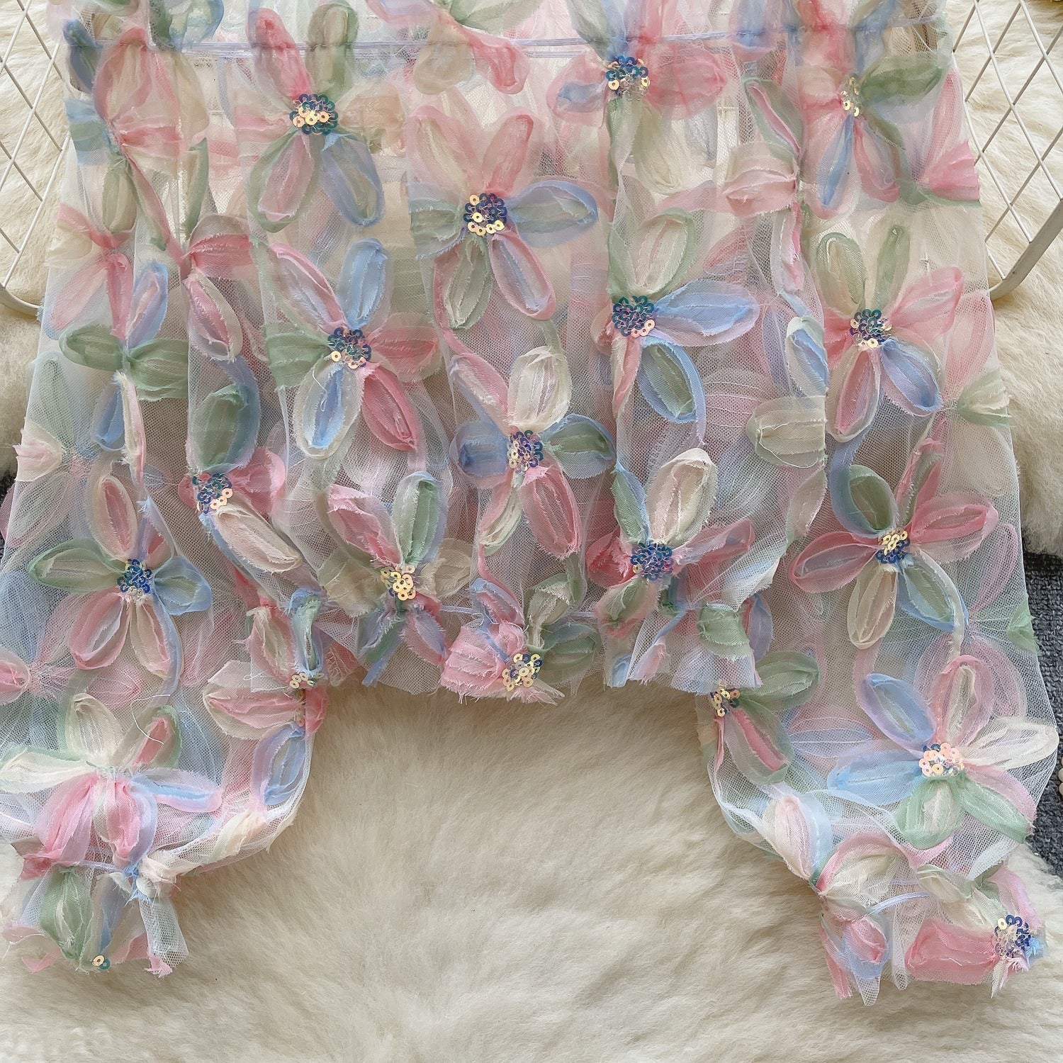 Eleva tu guardarropa de verano con nuestra blusa coreana de hombros descubiertos y mangas abullonadas. Confeccionada en poliéster, esta pieza ligera y fluida está adornada con flores en relieve para un toque de dulzura. ¡Su diseño aireado y chic la convierte en un imprescindible del verano! 🌸