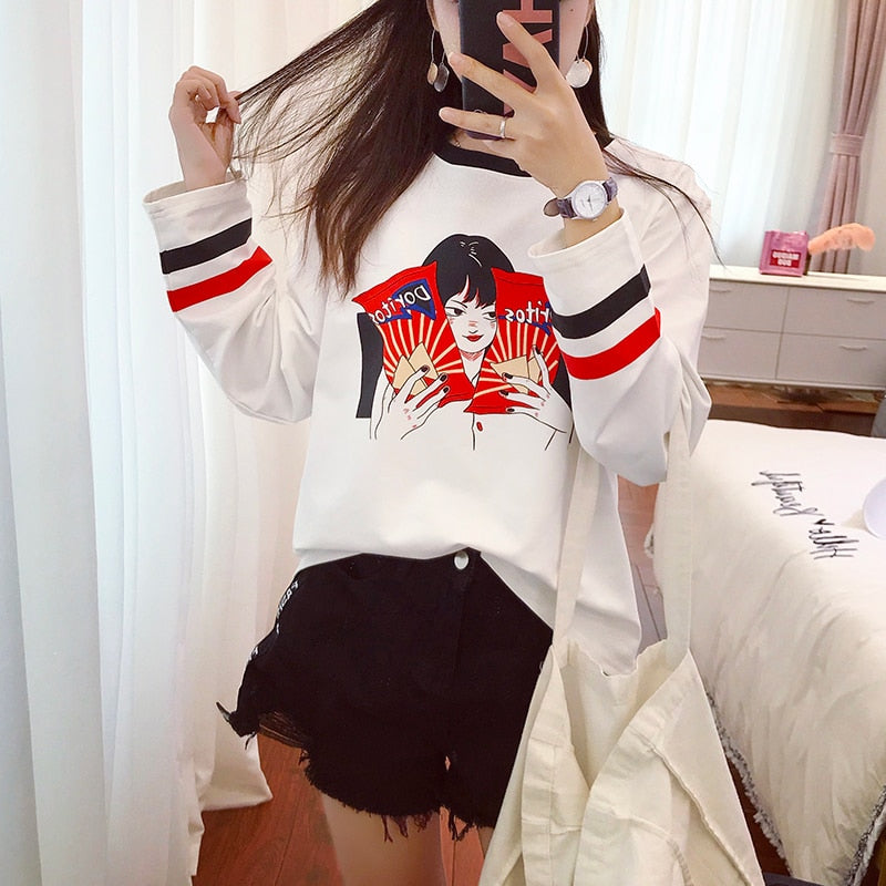 Añade un toque de fantasía a tu armario con nuestra camiseta coreana de mujer con estampado de dibujos animados. ¡Este modelo informal es perfecto para un look moderno y cómodo! 🎨
