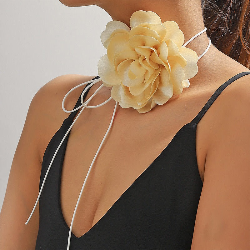 Añade un toque de elegancia a tu atuendo con nuestro collar de flores de satén. Esta joya sofisticada y de moda es perfecta para realzar cualquier atuendo, ya sea para una noche o una ocasión especial. 🌸