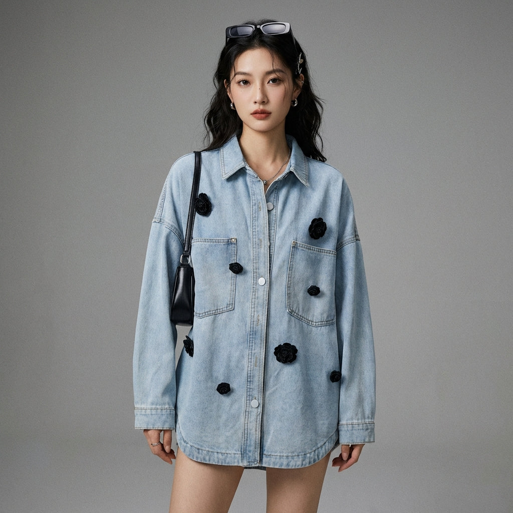 Adopta un look retro y moderno con nuestra camisa de mezclilla adornada con delicadas flores en relieve. Ideal para un estilo casual o más sofisticado, ¡esta pieza versátil realzará tu guardarropa con un toque de originalidad! 🌸
