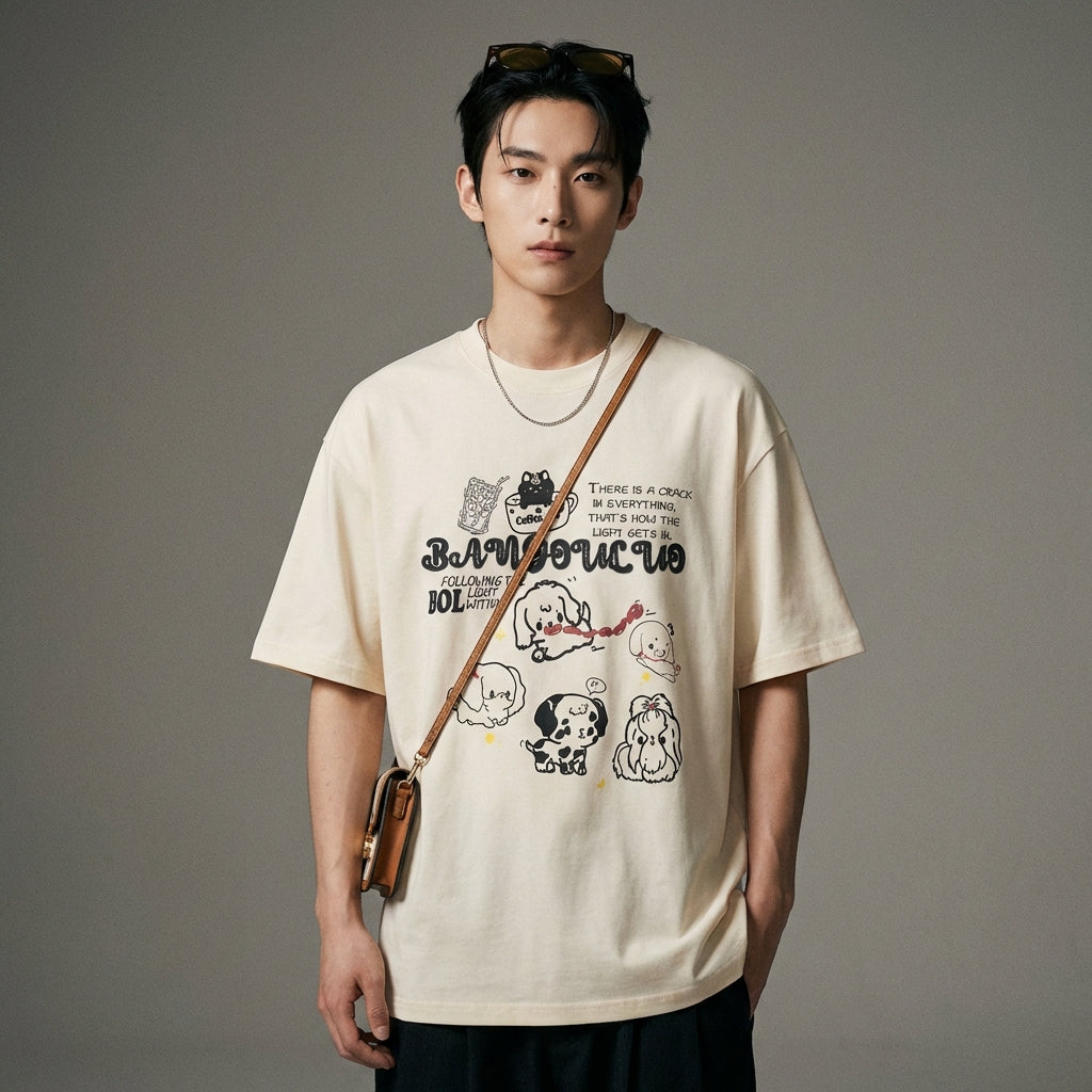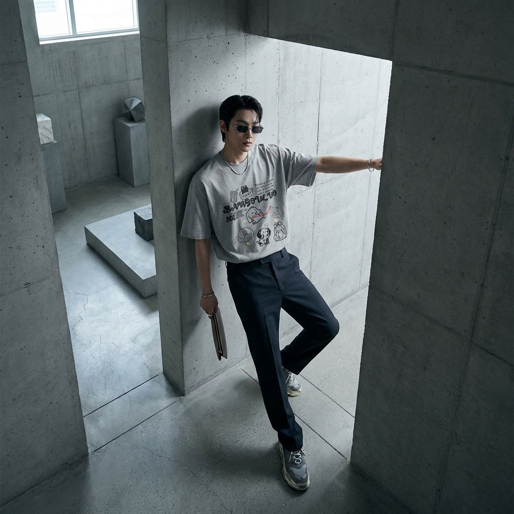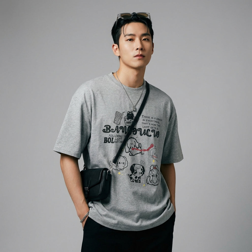 - Estilo: Streetwear, Casual, Hip Hop. Esta camiseta encarna la esencia de la moda urbana coreana, ideal para un look moderno y atrevido.