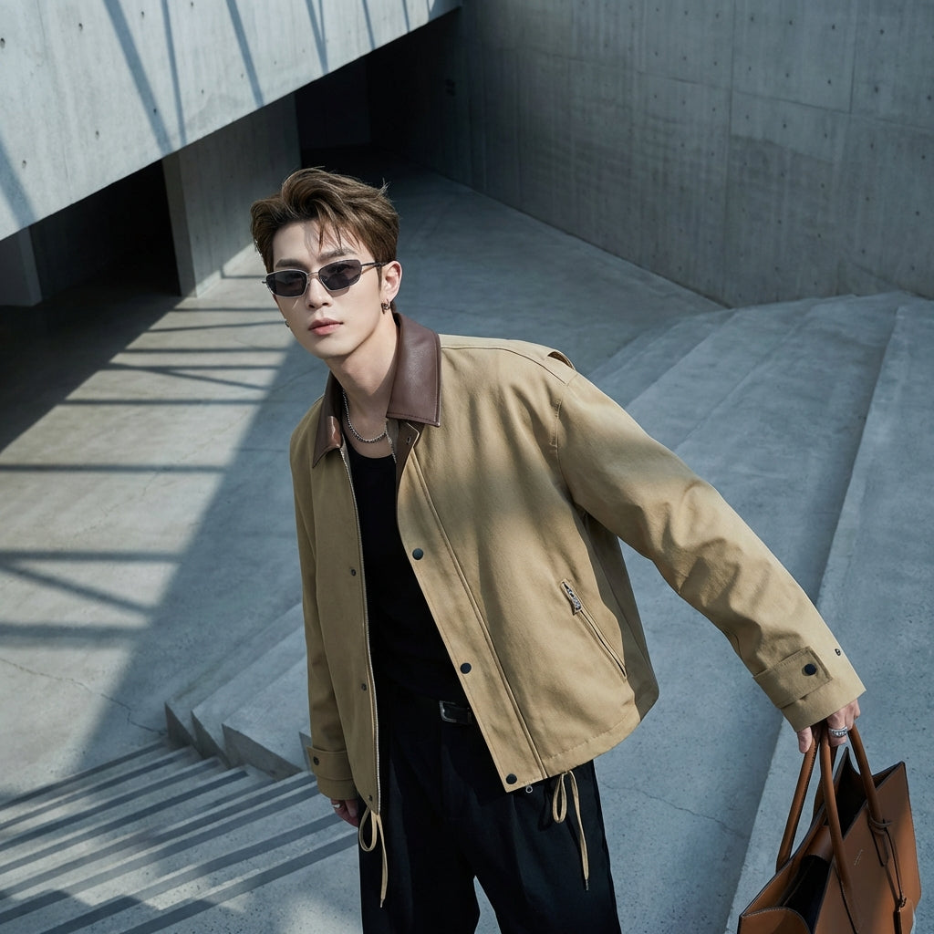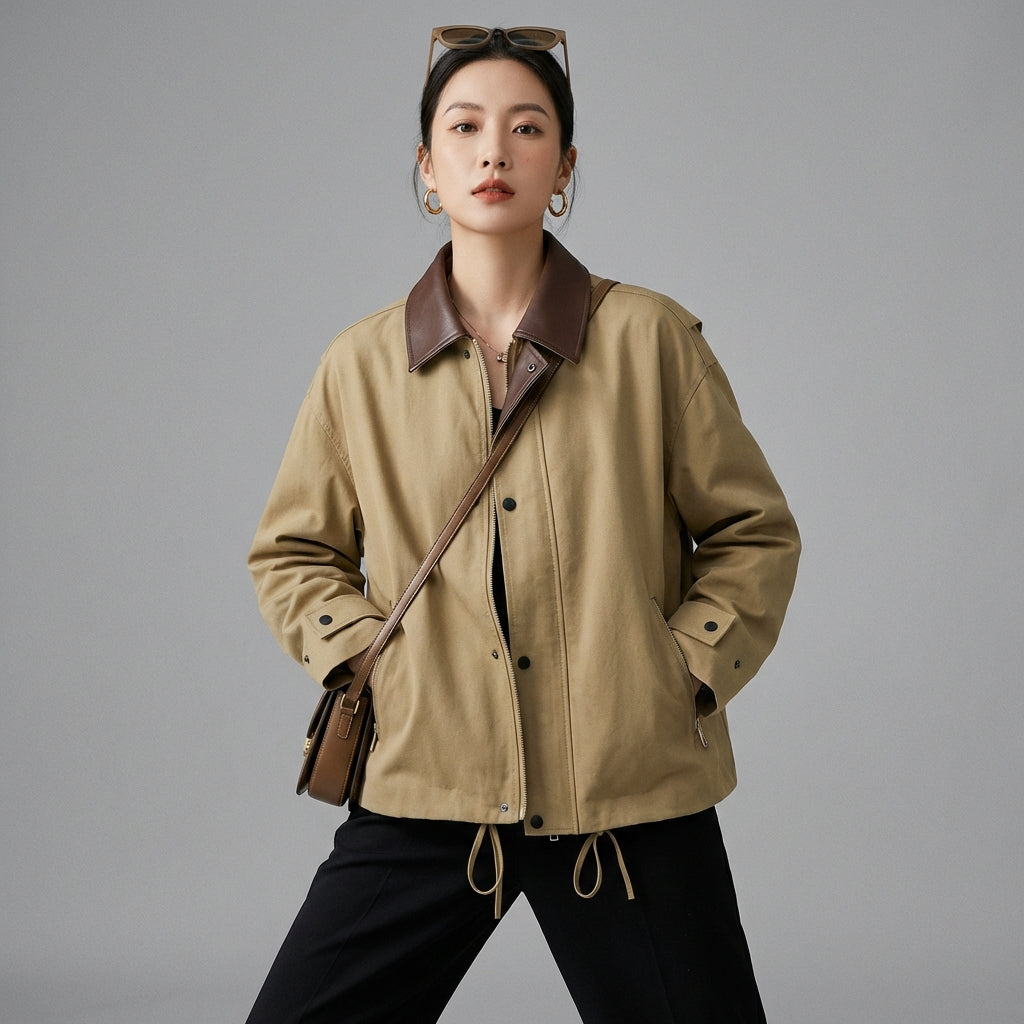 Veste streetwear rétro unie à col rabattu pour un look décontracté et moderne.