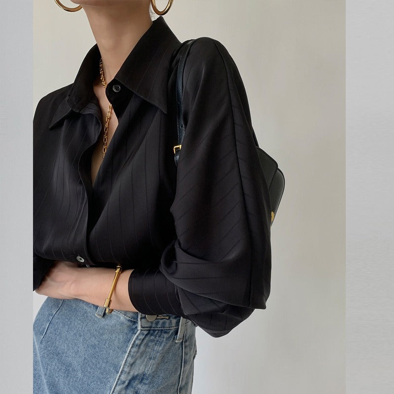 Descubre nuestra camisa de rayas coreana de lujo, perfecta para principios de primavera. Su diseño elegante y su corte ajustado realzan tu figura. 🌸
