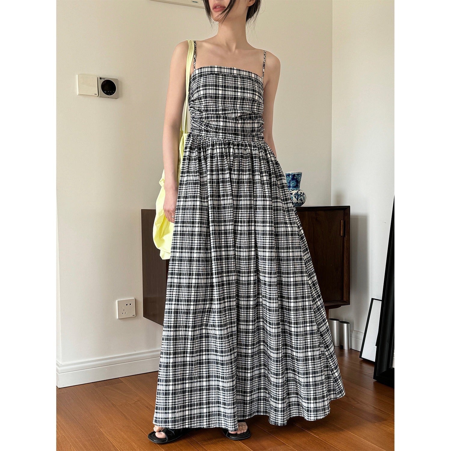 Aporta un toque romántico y natural a tu guardarropa de verano con nuestro vestido largo de tirantes a cuadros. Confeccionado en algodón, este vestido informal es ideal para las vacaciones y los días soleados.