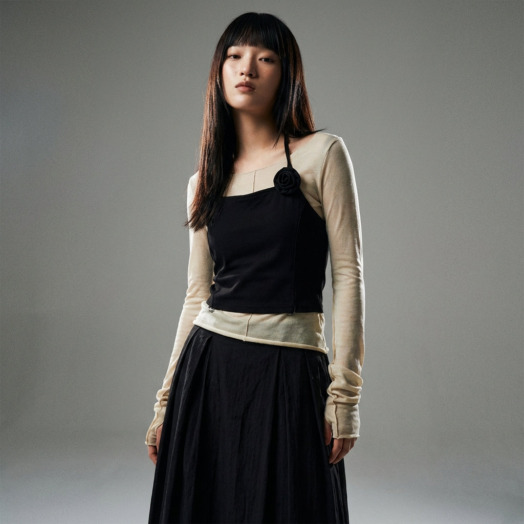- Tipo: Conjunto de tres piezas, Falda larga, Top de tirantes, Camiseta de manga larga. Una combinación de piezas que permite múltiples looks, desde el más casual hasta el más sofisticado.