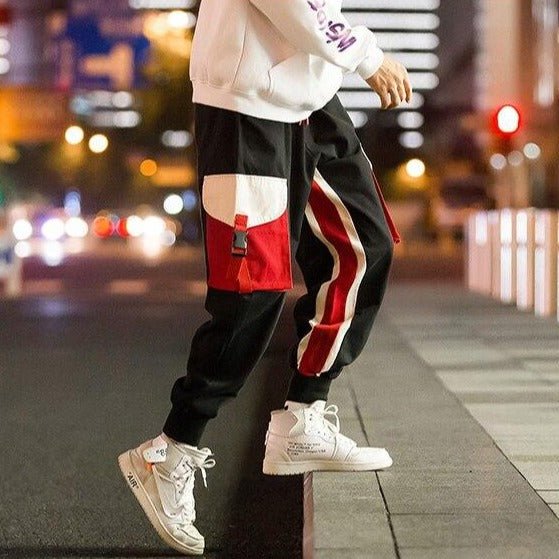 Los pantalones de chándal especiales son una mezcla de colores que dan un estilo moderno. Estos pantalones de chándal están compuestos por varios bolsillos grandes rojos y blancos. Están disponibles en dos variantes de color. Son unos pantalones cómodos que gustan mucho a los jóvenes.