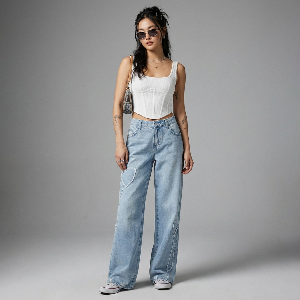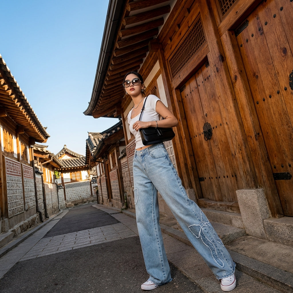 Estos vaqueros son una pieza clave para aquellas que desean expresar su personalidad a través de un estilo único, combinando comodidad, tendencia y un guiño a la K-fashion.